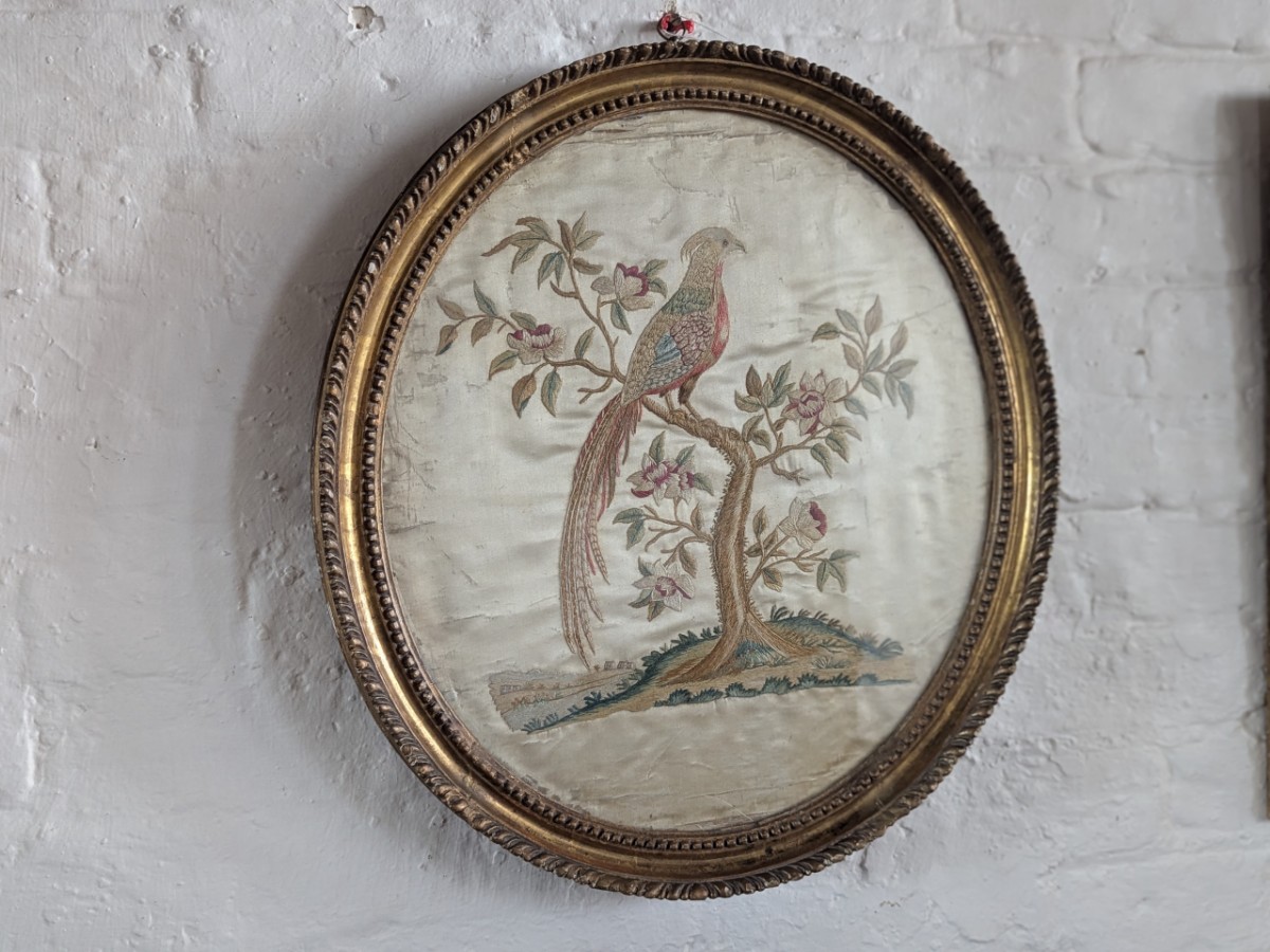 • 18th Century Oval Silk Work Panel Of A Parrot