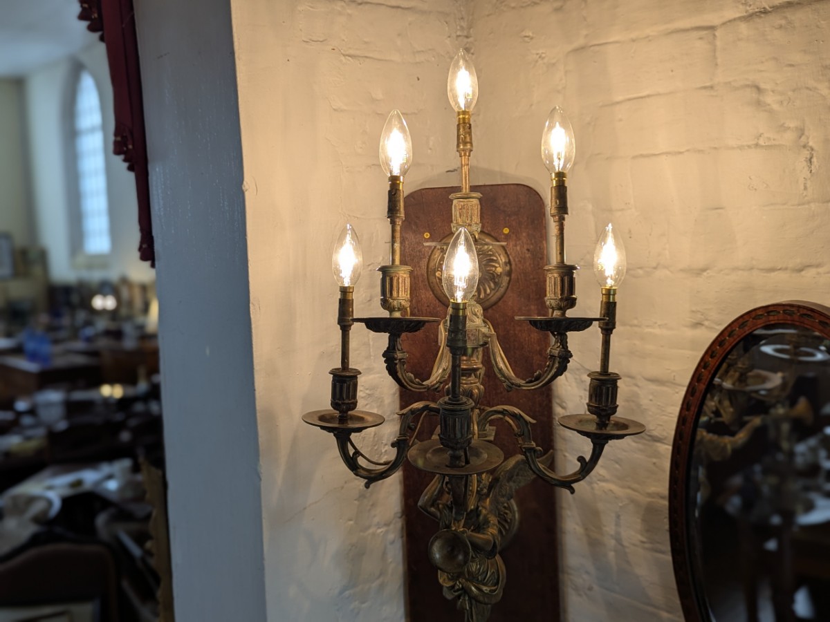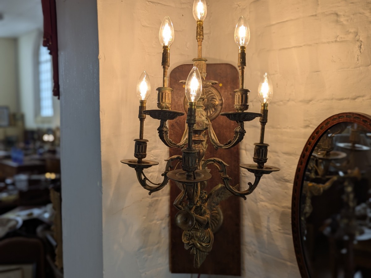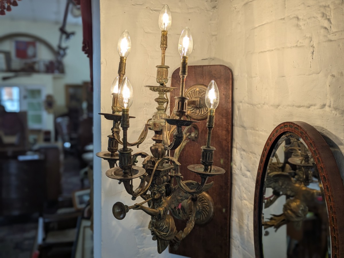 • Victorian Gilt Brass 6-Branch Wall Mounted Candelabra