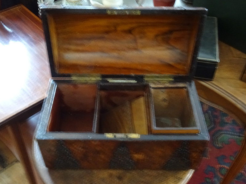 • 19th. century burr walnut tea caddy 'Parkins & Gotto'