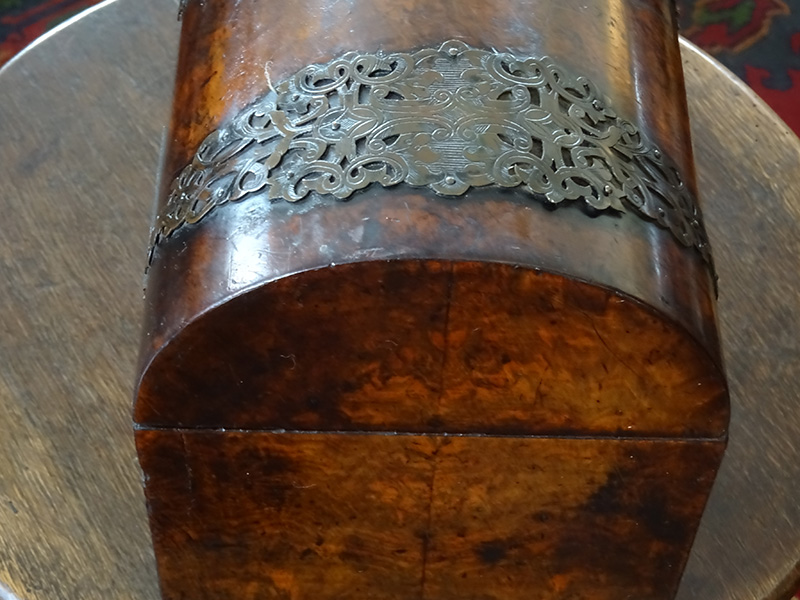 19th. century burr walnut tea caddy 'Parkins & Gotto'