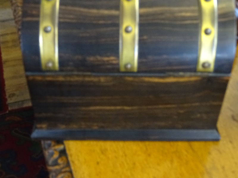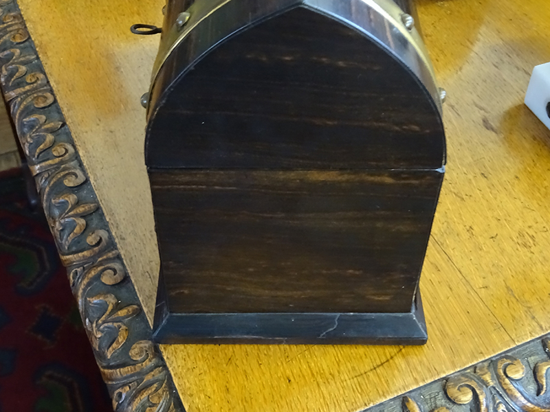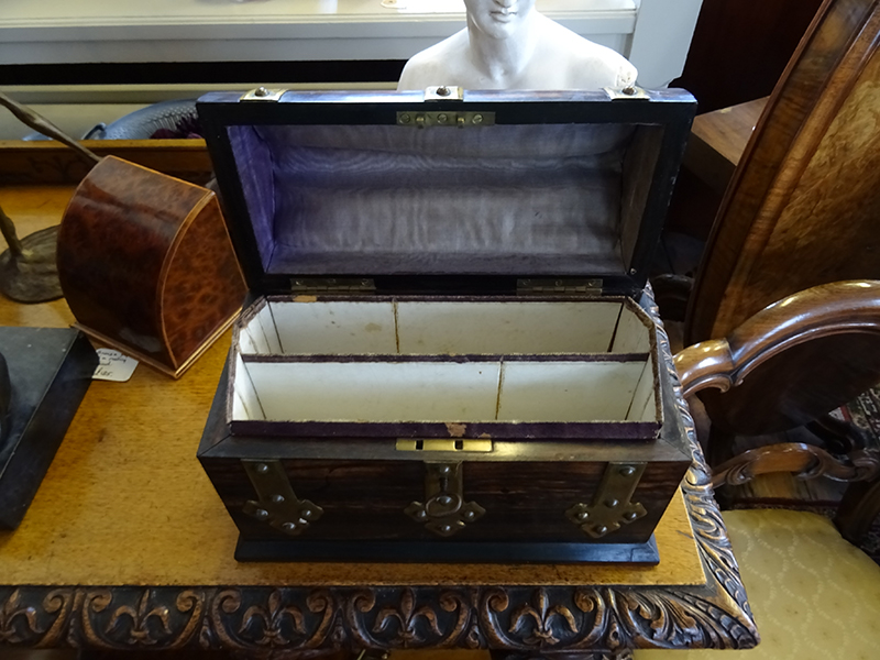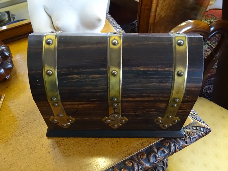 Here is a good early 19th. century Coromandel wood stationery box with brass bands, in excellent condition and measures 10 inches long.