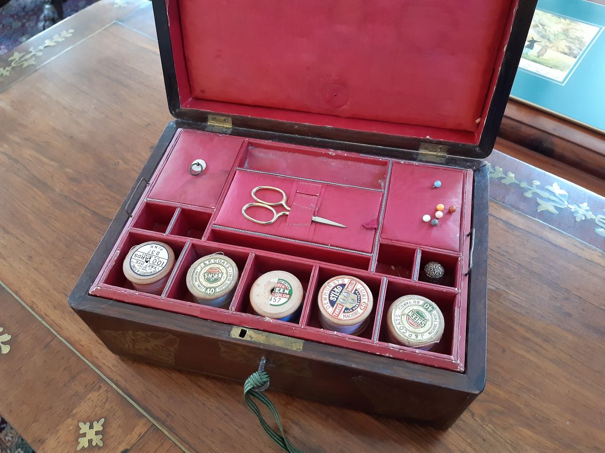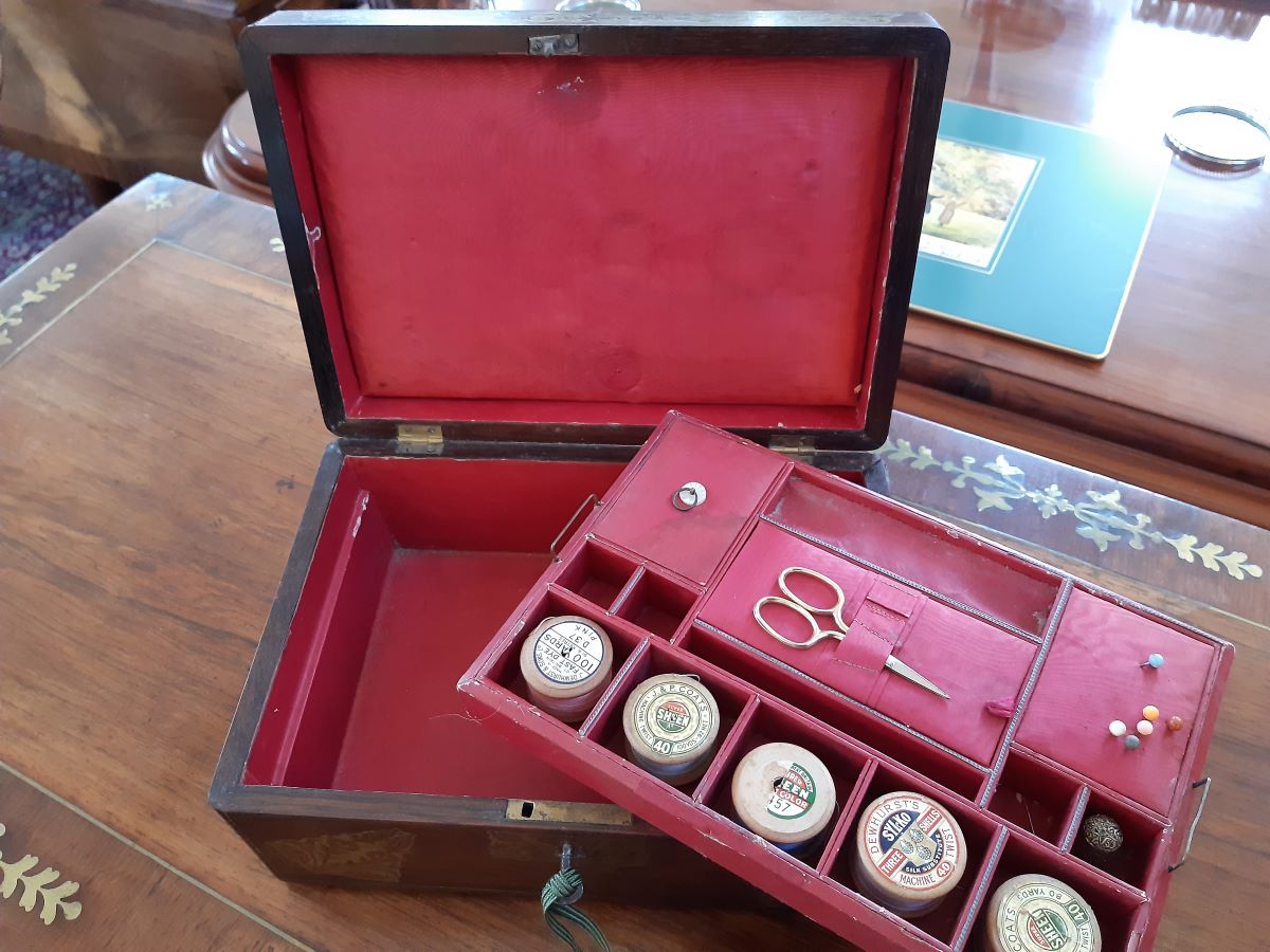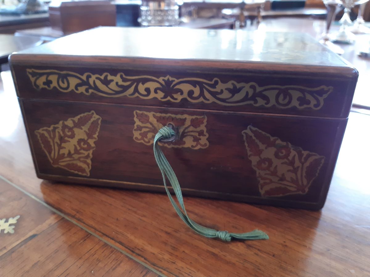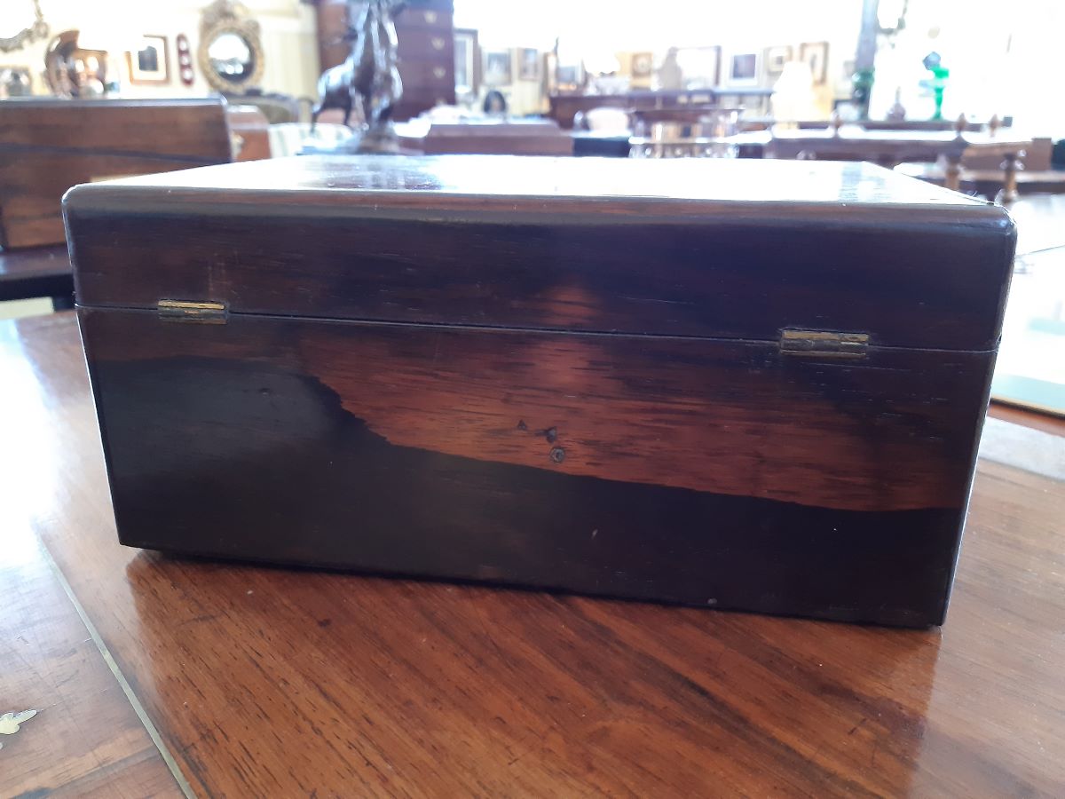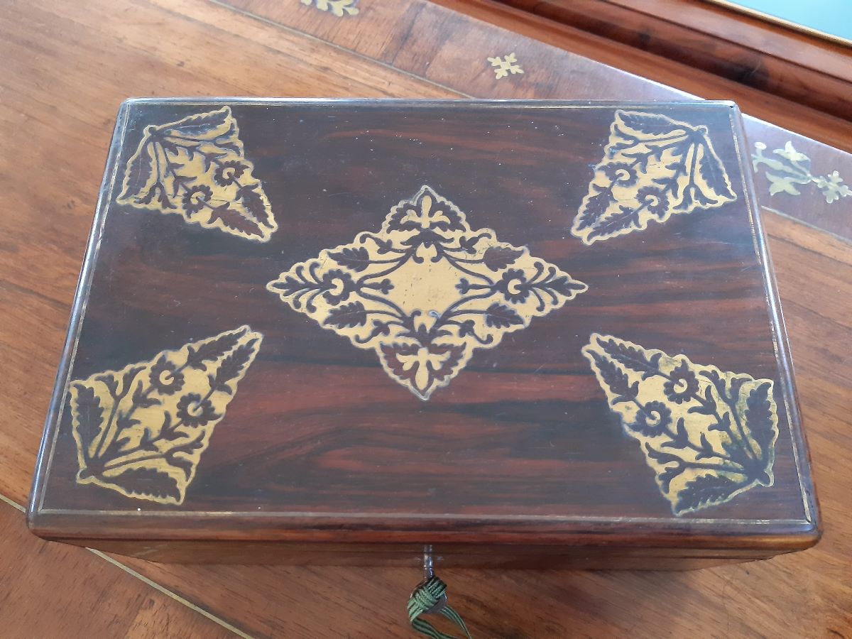 • Early 19th Century Rosewood With Brass Inlay Sewing Box