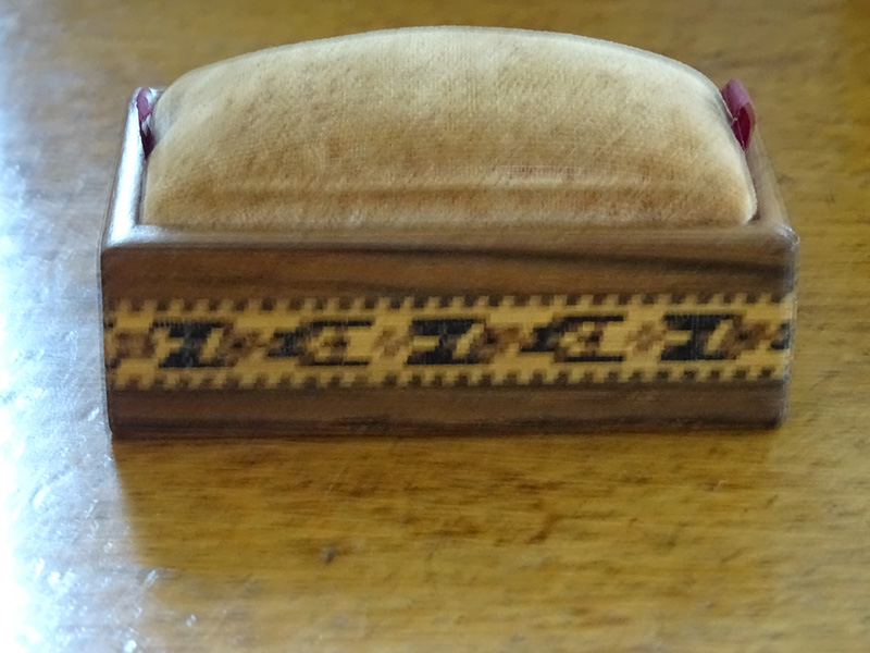 Tunbridge ware pin cushion box.