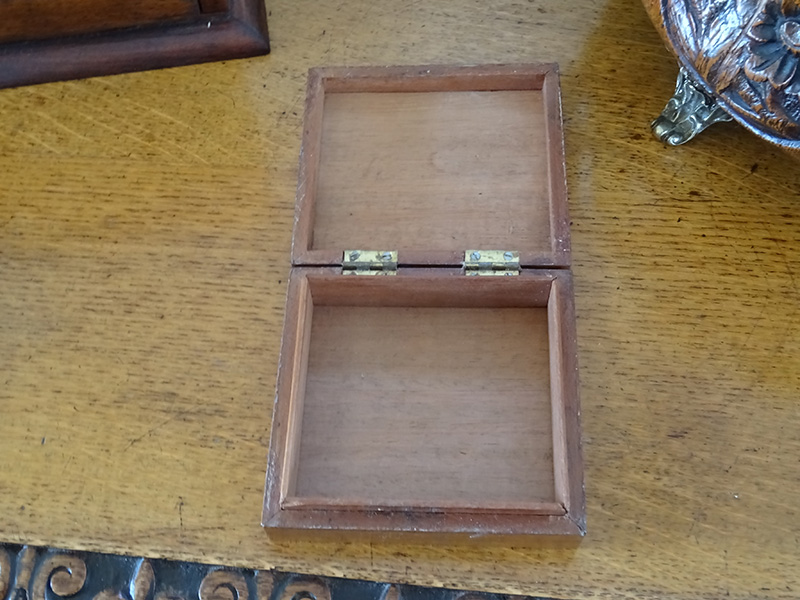 Here are a two 19th. century Tunbridge ware boxes, larger box measures 4x4 inches, smaller measures 3x2 inches. Both in good condition.