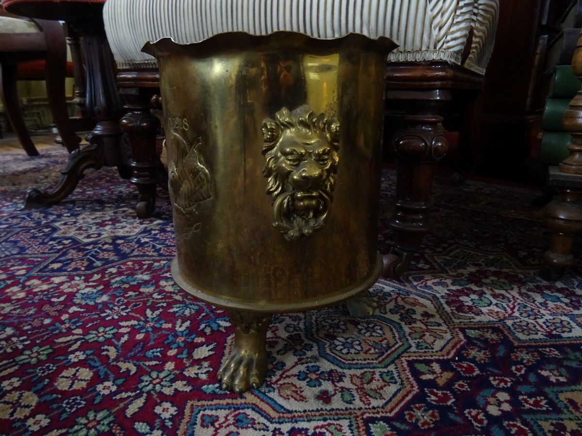 First World War shell case, adapted to a jardiniere/stand. Engraving on side, 1914-1918. Marks on base: Polte Magdeburg.