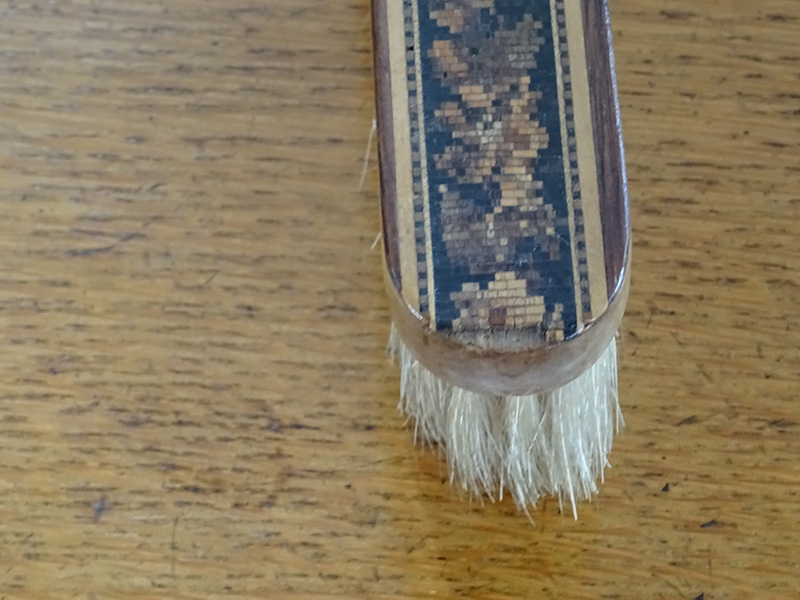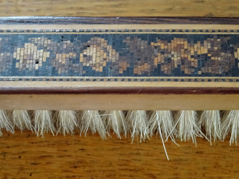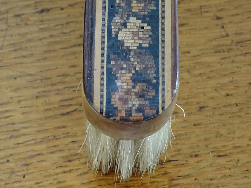 Here is a 19th. century Tunbridge ware clothes brush with inlaid marquetry flowers, measures 7.5 inches.