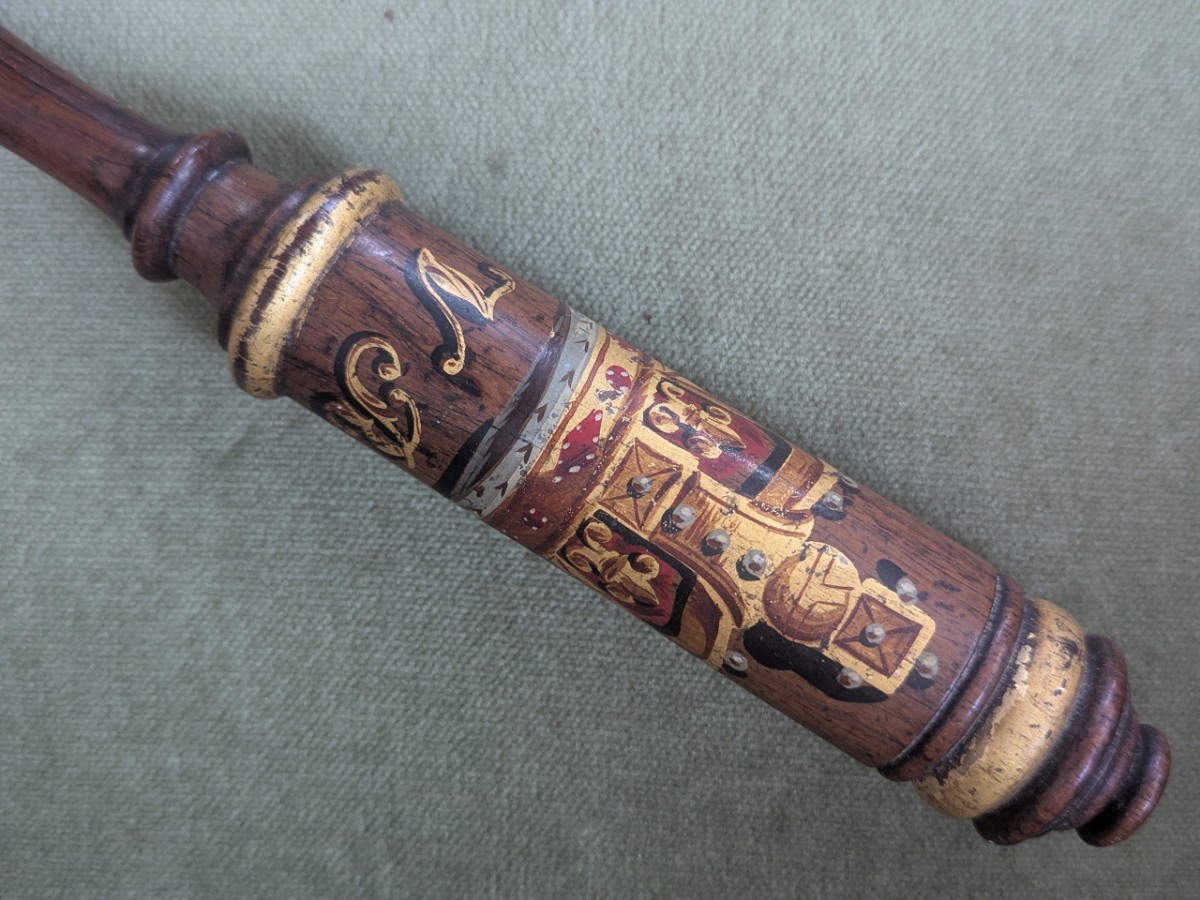 Turned and painted wood tipstaff with Royal cypher. Length 12½''.