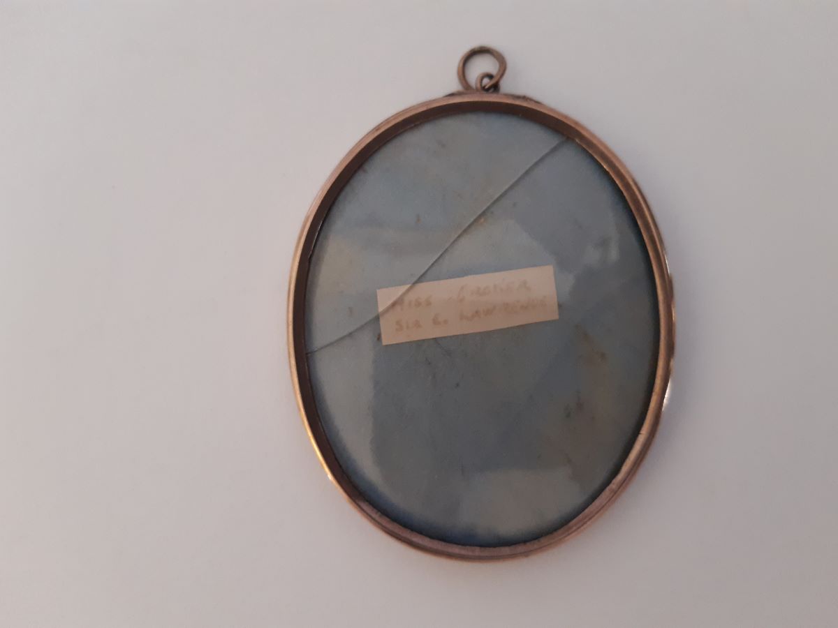 Here is a miniature watercolour of Miss Croker set in a pinch back frame.