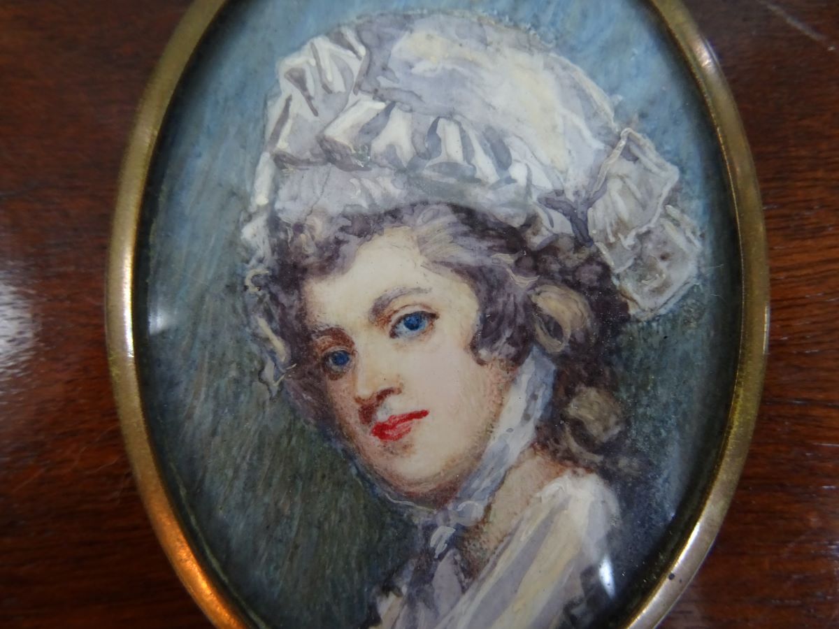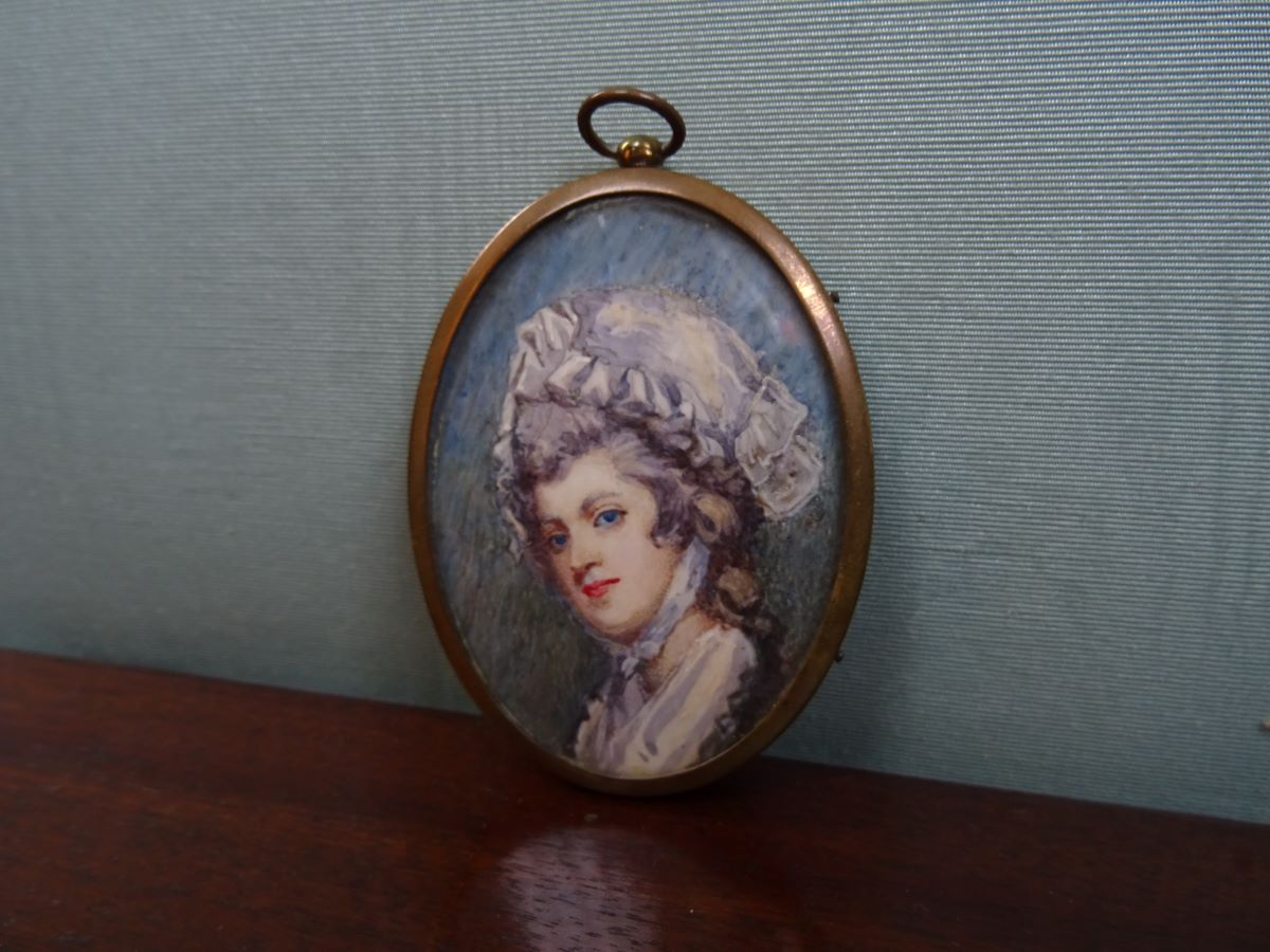 Here is a 19th century miniature watercolour of a woman encased in a gilt metal frame.