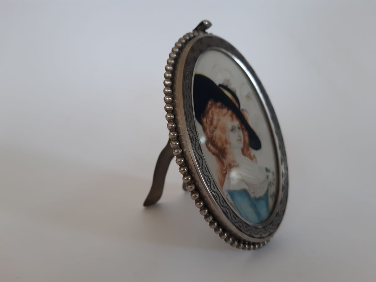 Here is an oval miniature portrait of Lady Devonshire encased in nickel plate frame which measures 4½''.