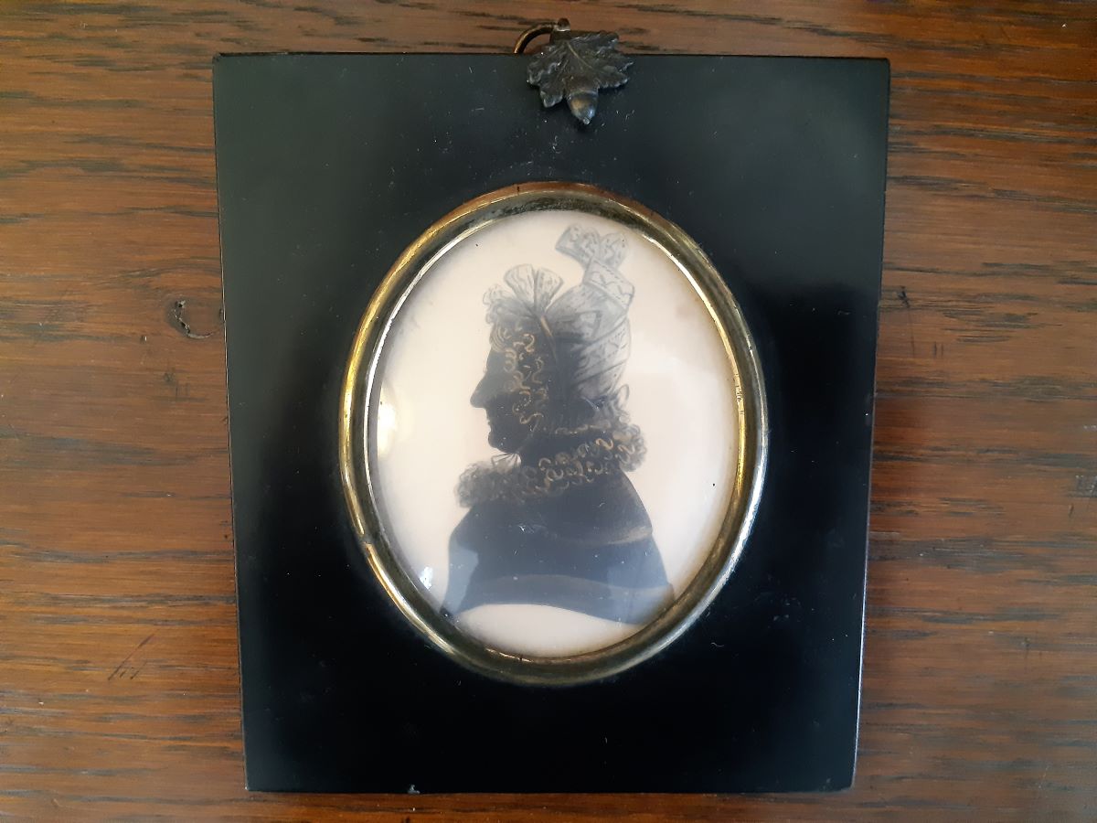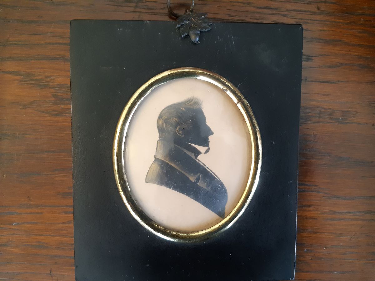 Pair 19th century painted silhouette Captain & Mrs Macleod