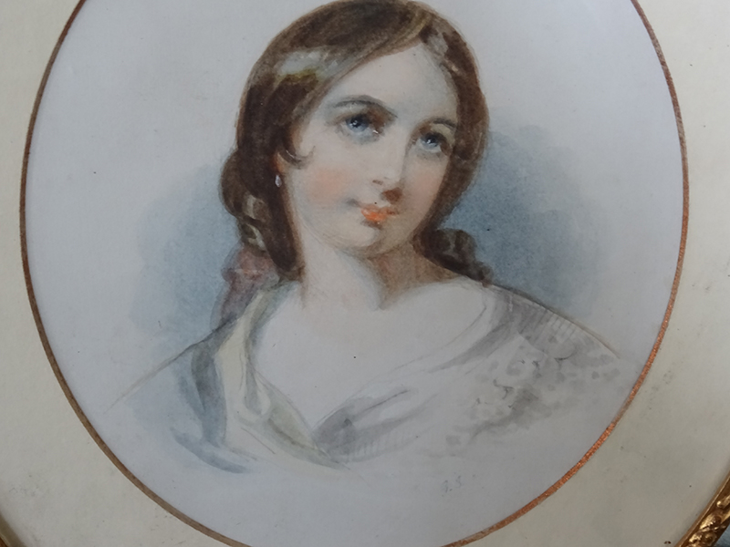 Here is a good 19th. century oval watercolour of a young woman in a gilt frame measuring 13 inches. Signed G S, ('George Shepherd' ?, 1784-1862).