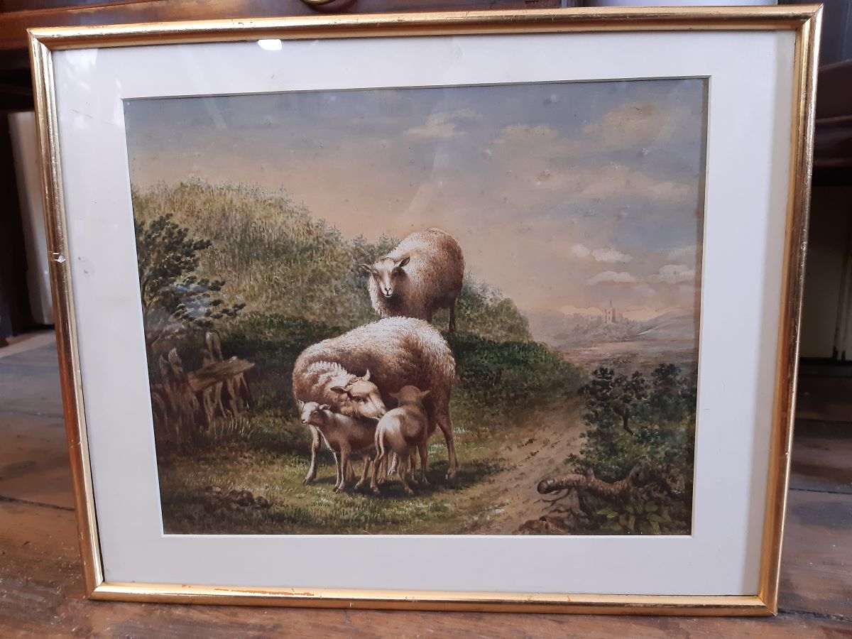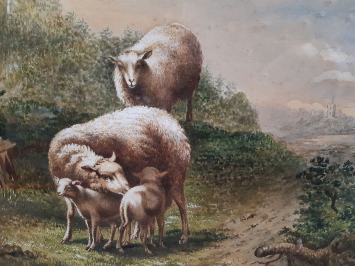 • 19th century watercolour of sheep