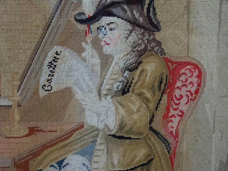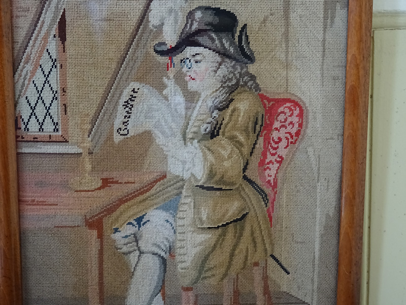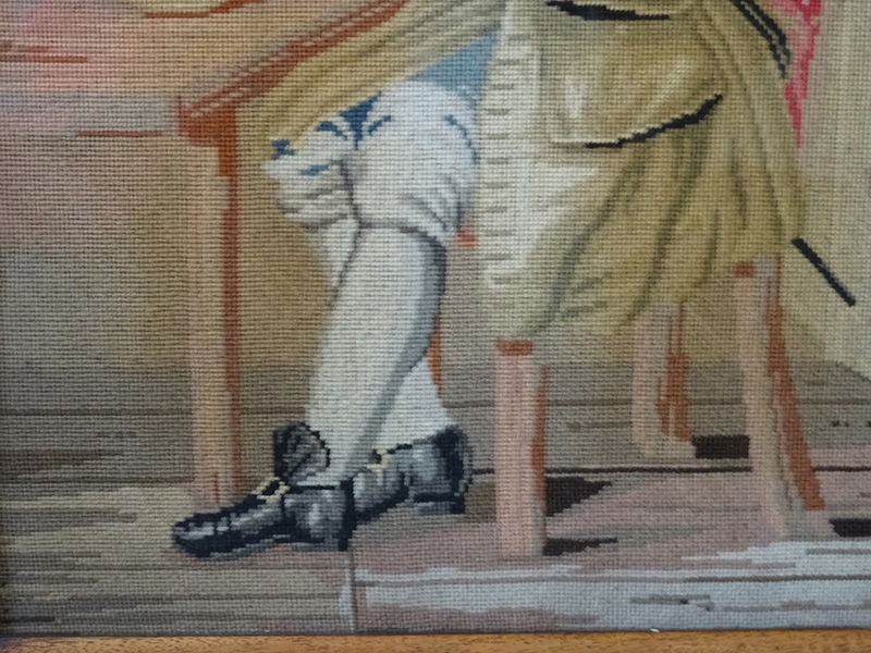 Here is a good woolwork picture depicting a gentleman reading a newspaper, from the early 1800's. Maple frame which measures 20 inches in height.
