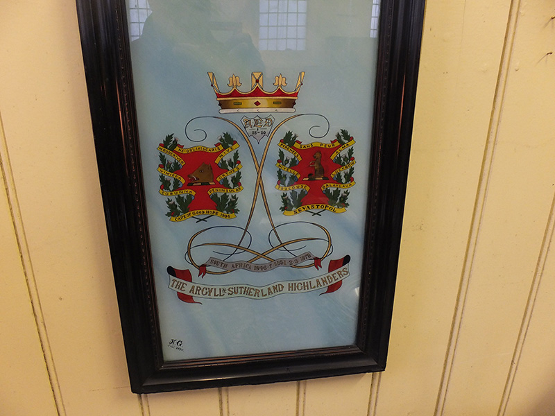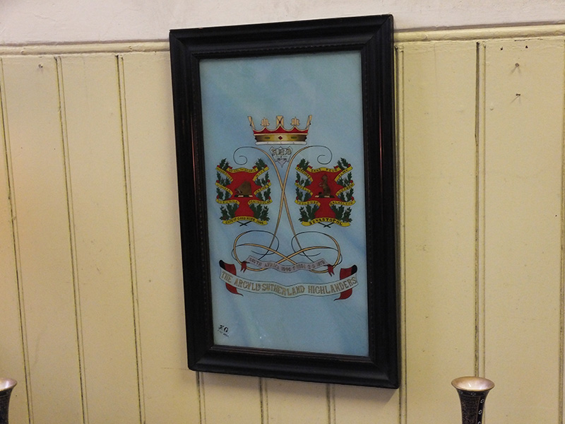 Here is a reverse painting behind glass depicting the Argyll and Southerland Highlanders Coat of Arms, monogrammed and dated 1930, ebonised frame and measures 23.5 inches high. Good condition.