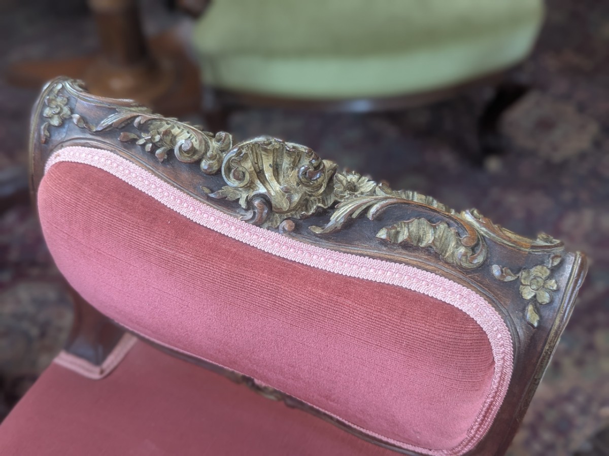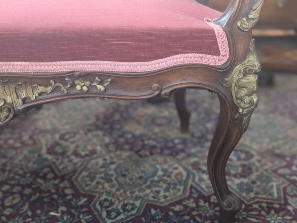 • 19th Century French Carved Walnut & Parcel-Gilt Dressing Stool