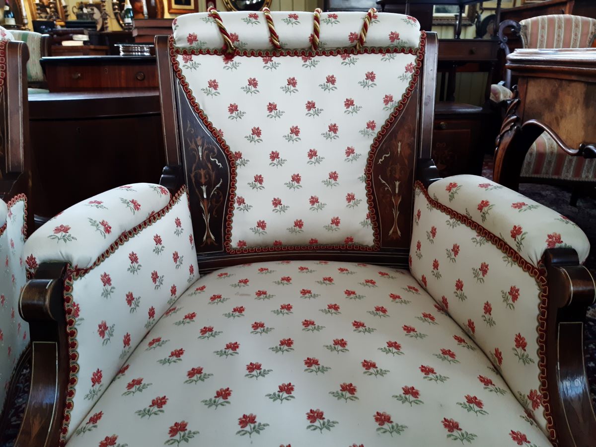 A fine pair of parlour chairs with marquetry ivory inlay. Ivory reference declaration JF8FU9F4.