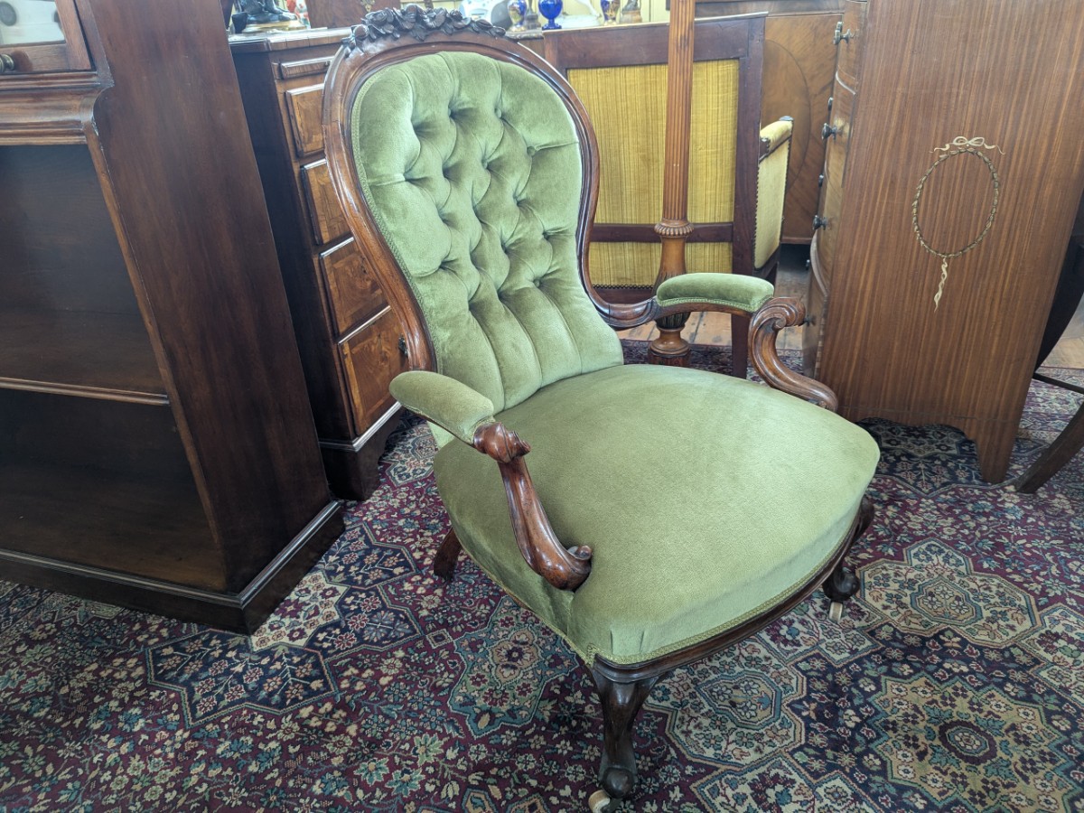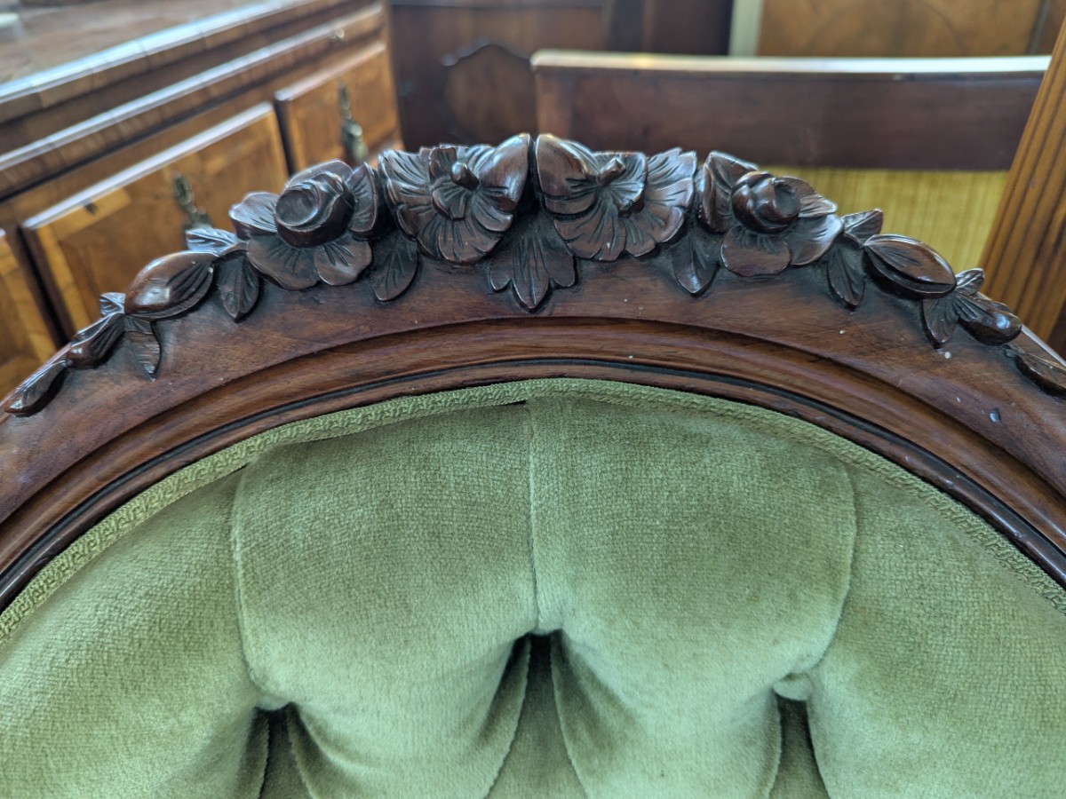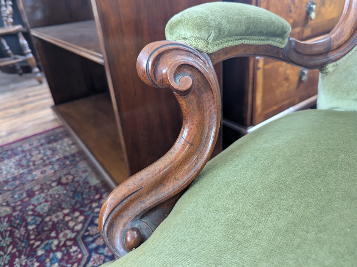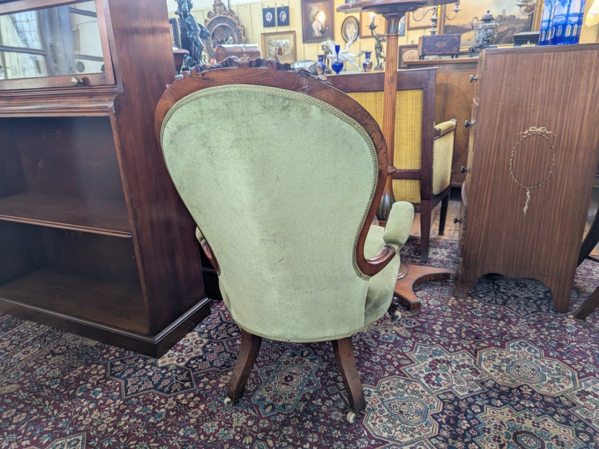 • Victorian Carved Walnut Fireside Chair