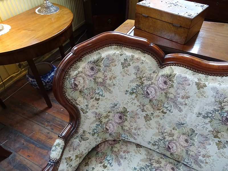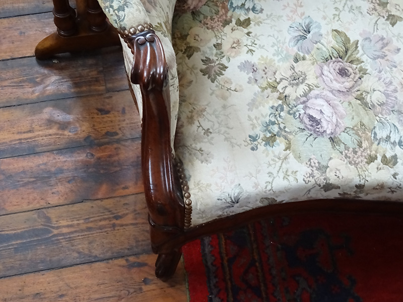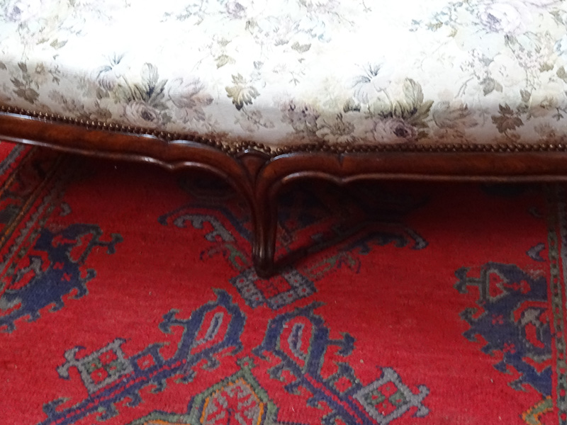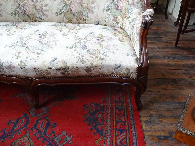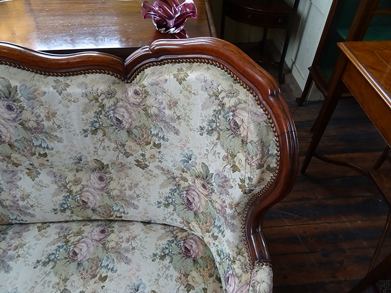 Here is a 19th. century French Louis Philippe mahogany show wood settee with moulded shaped frame with upholstered back and serpentine seat standing on cabriole legs. Excellent condition. Measures 60 inches long and 37 inches high.