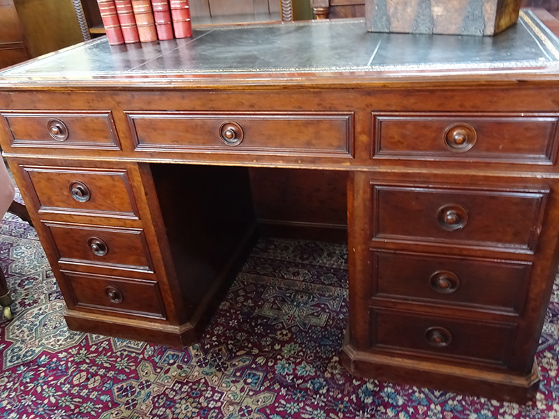 Here is a good quality 19th. century mahogany desk, leather skiver with 9 drawers below. Good condition and measures 4 feet 2 inches by 2 feet 1 inches deep.