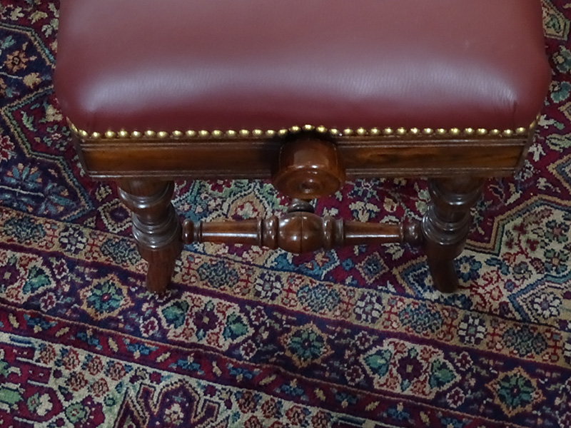 Here is an mid 19th. century rosewood piano stool, adjustable by turning the turned knobs on the side, good quality rosewood, previously upholstered in red leather by previous owner. The stool is in excellent condition and measures 20 inches wide.