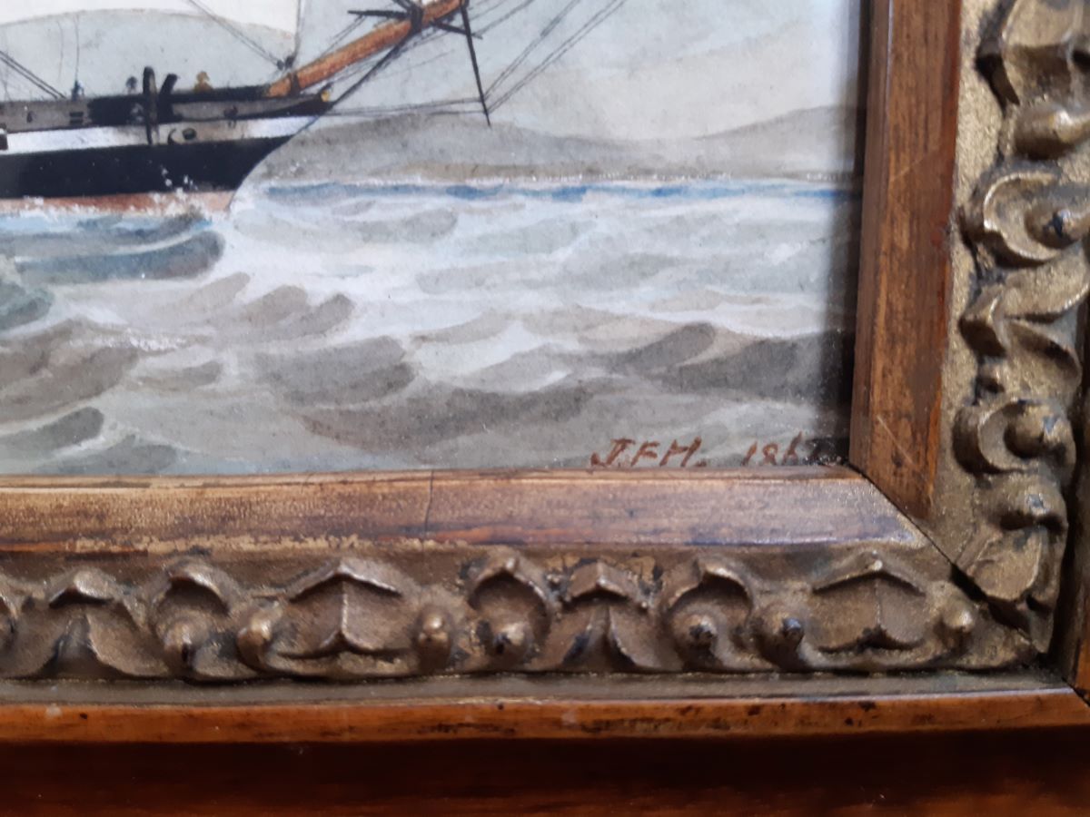 19th century watercolour British ship of the line, 1862 J.F.H