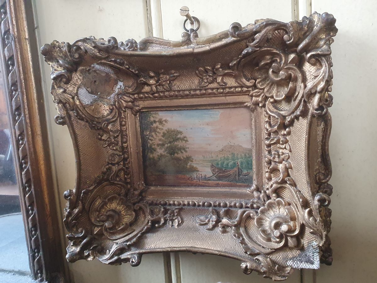 Verso on back dated 1817. Gilt ornate frame measures 9'' square.