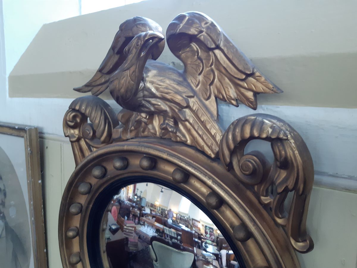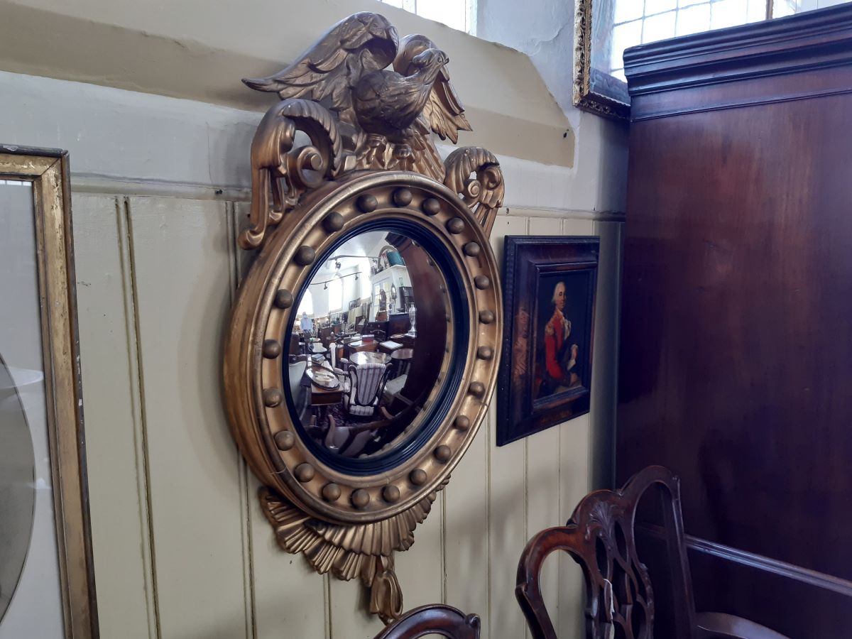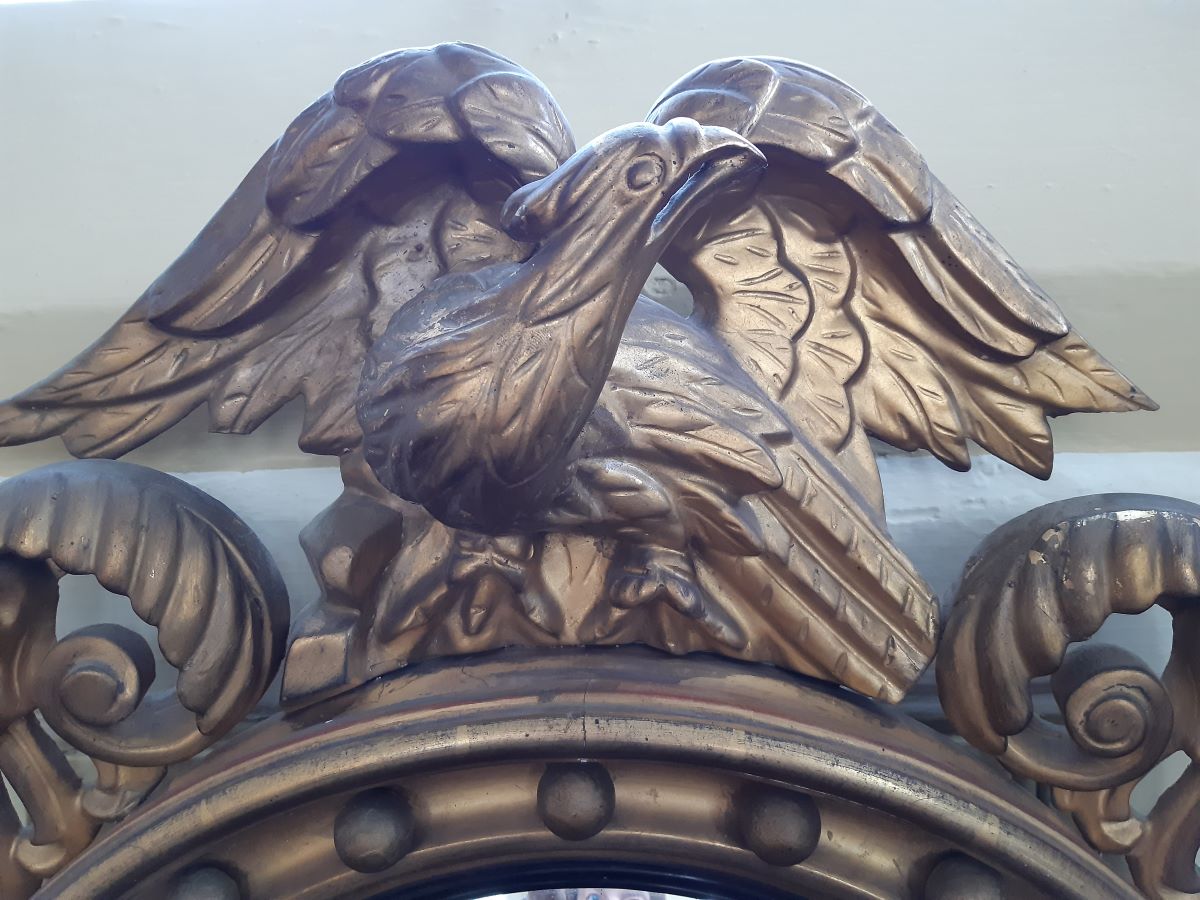 • Antique French convex wall mirror, gilt gesso frame