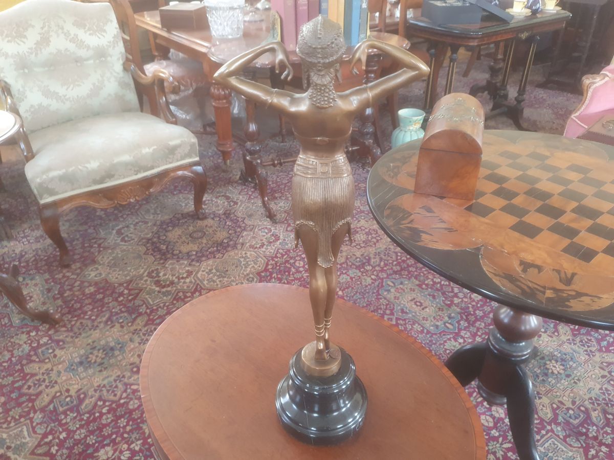 • Art Deco Bonze Exotic Dancer On Marble Base