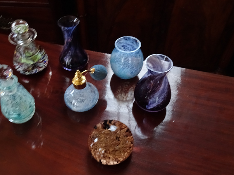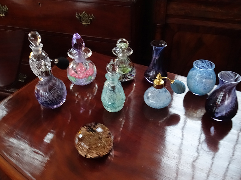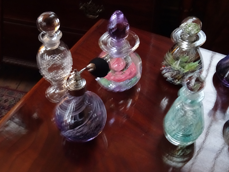 Collection of glass perfume bottles and vases