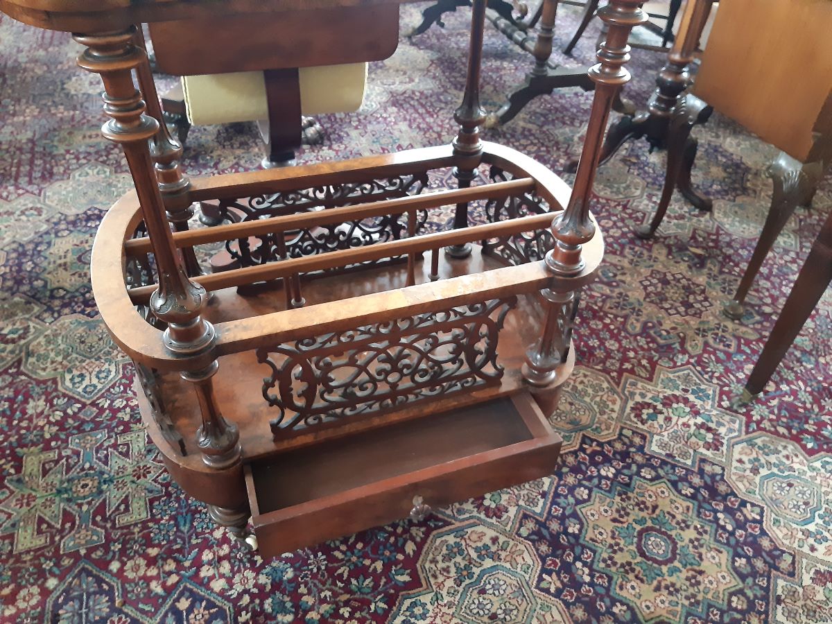 • Early Victorian Burr Walnut Canterbury Whatnot