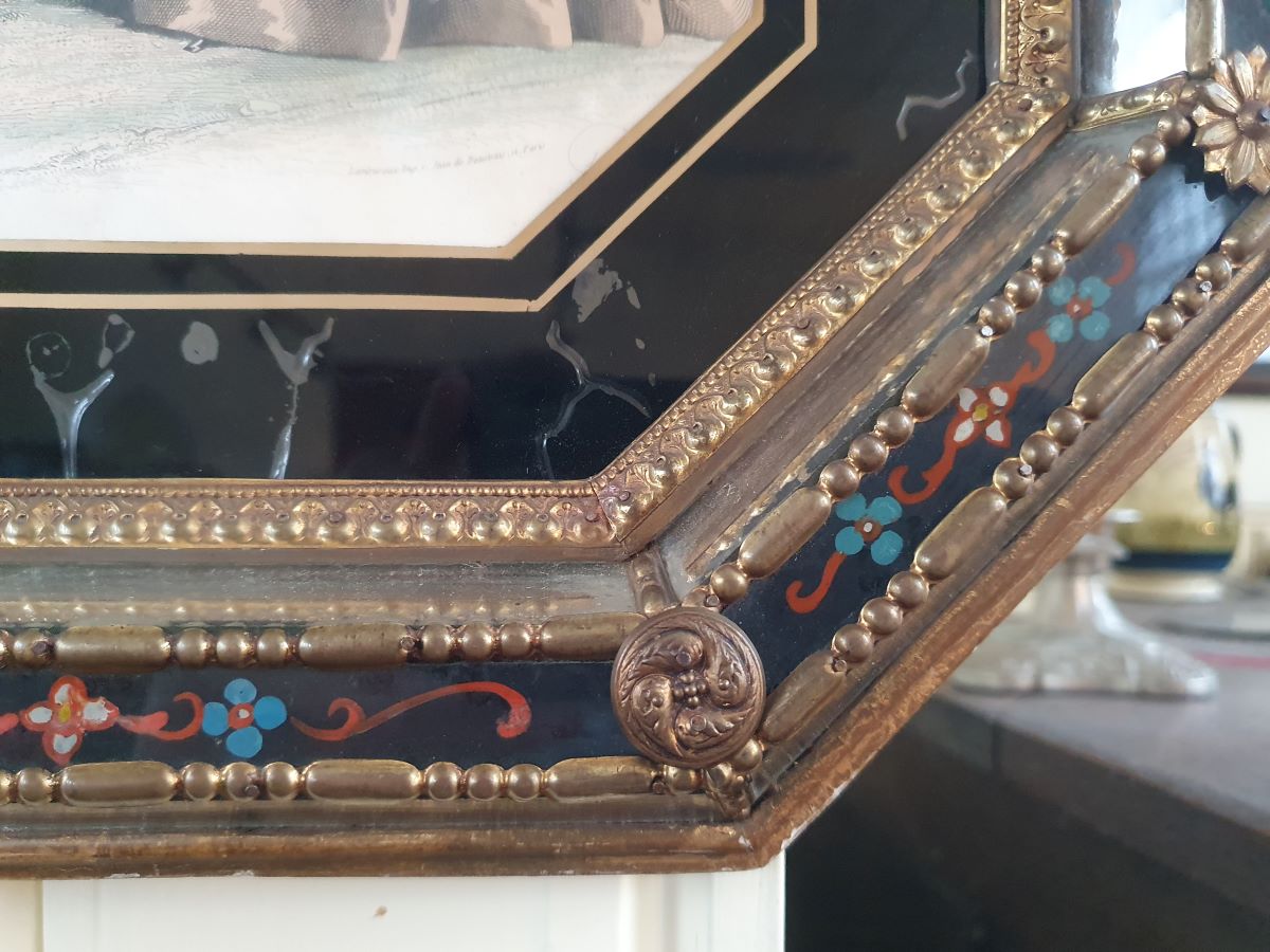 An embossed Brass And Verre Eglomise Mirrored Frame