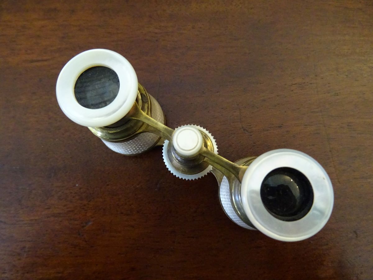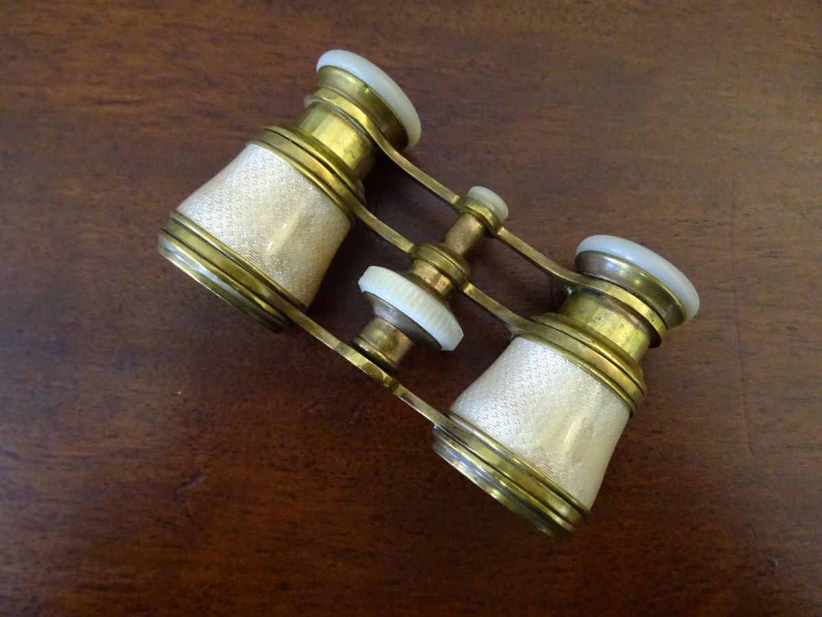 Here are a good pair of enamel and mother of pearl opera glasses.