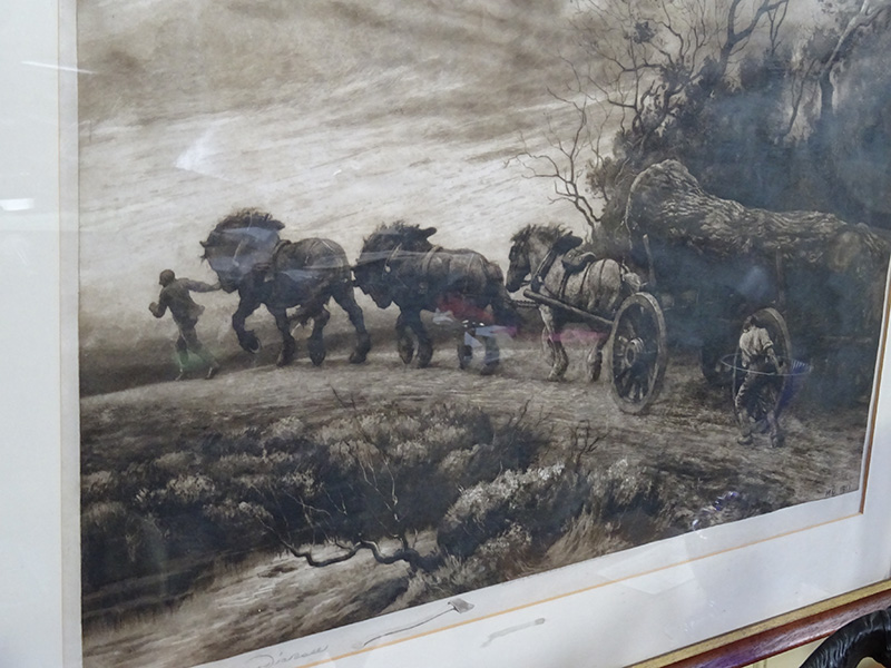 • Herbert Dicksee, timber wagon pulled by horses, signed