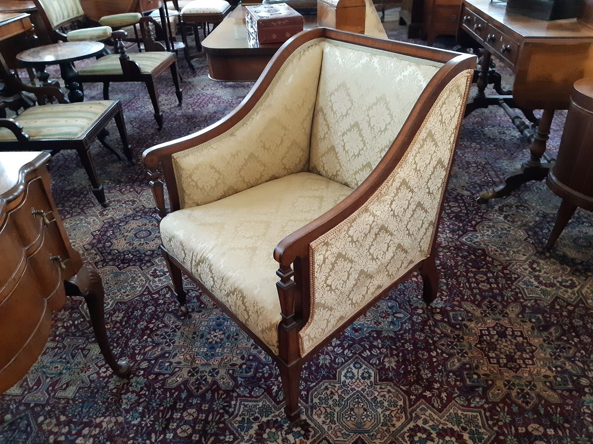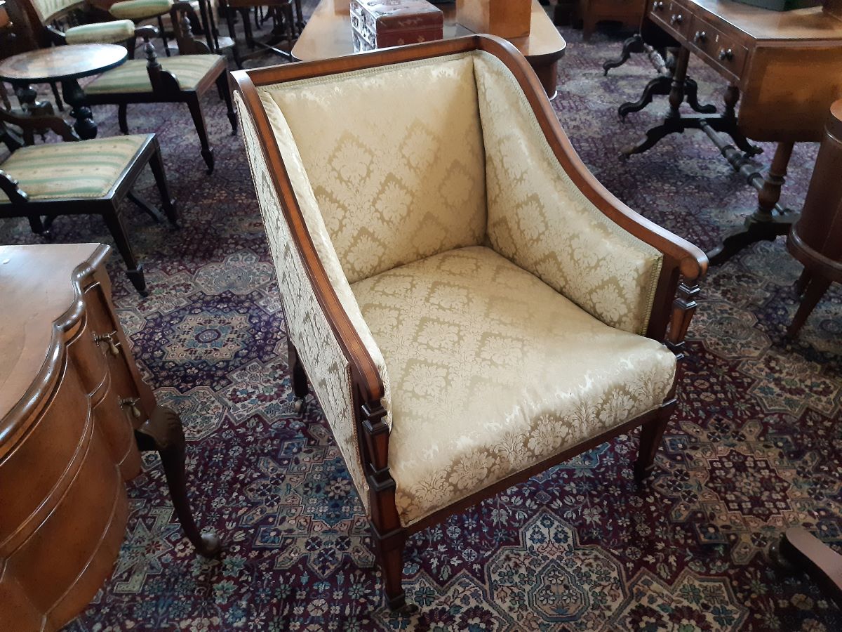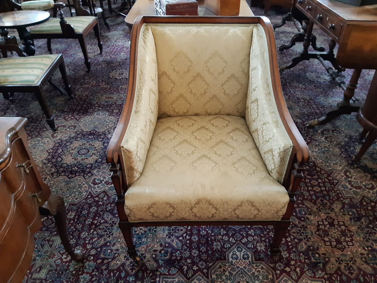 Good quality, satinwood banded mahogany armchair. Measures: Overall height 32'', seat height 16'', seat depth 21'', width 24''