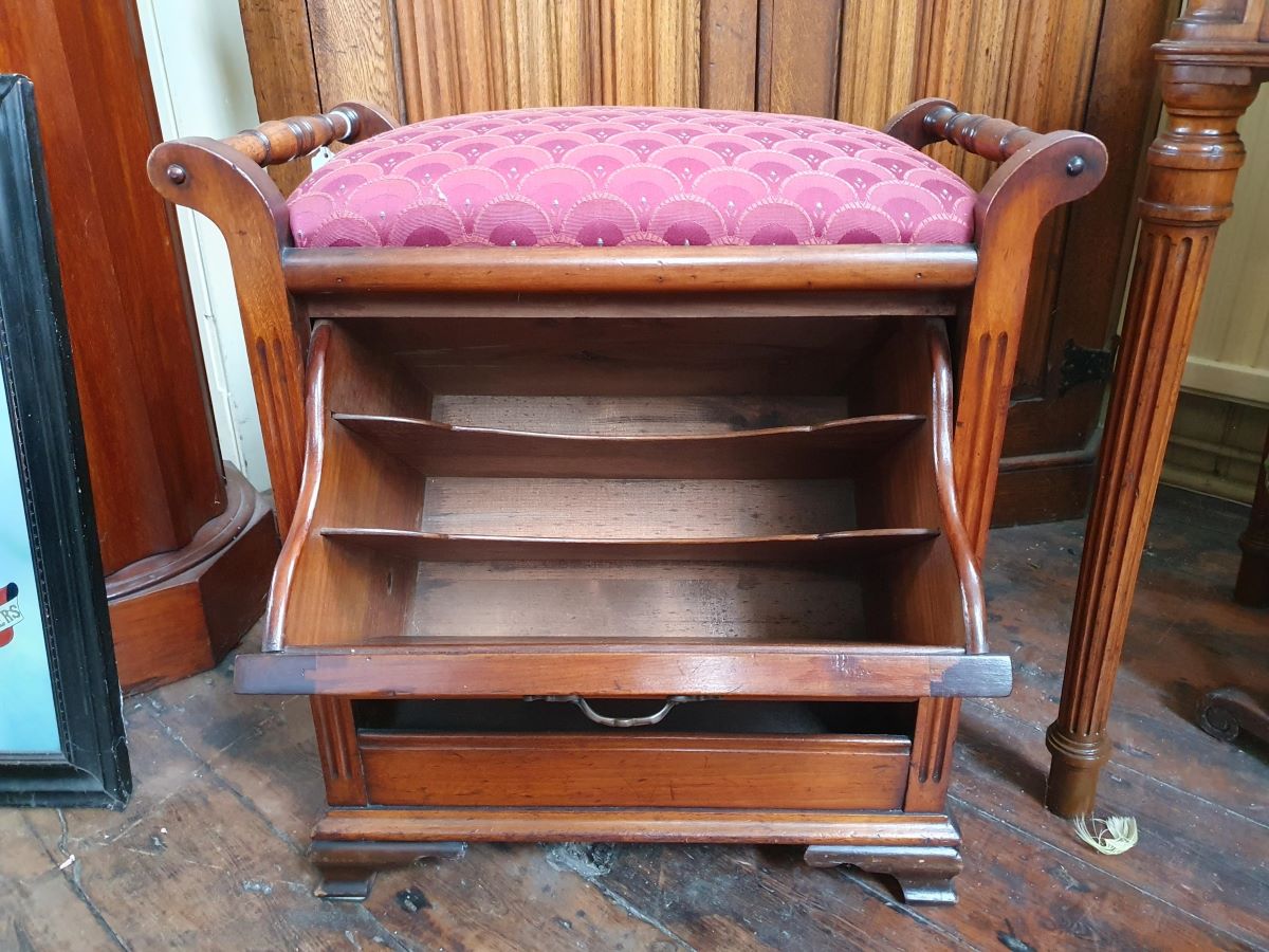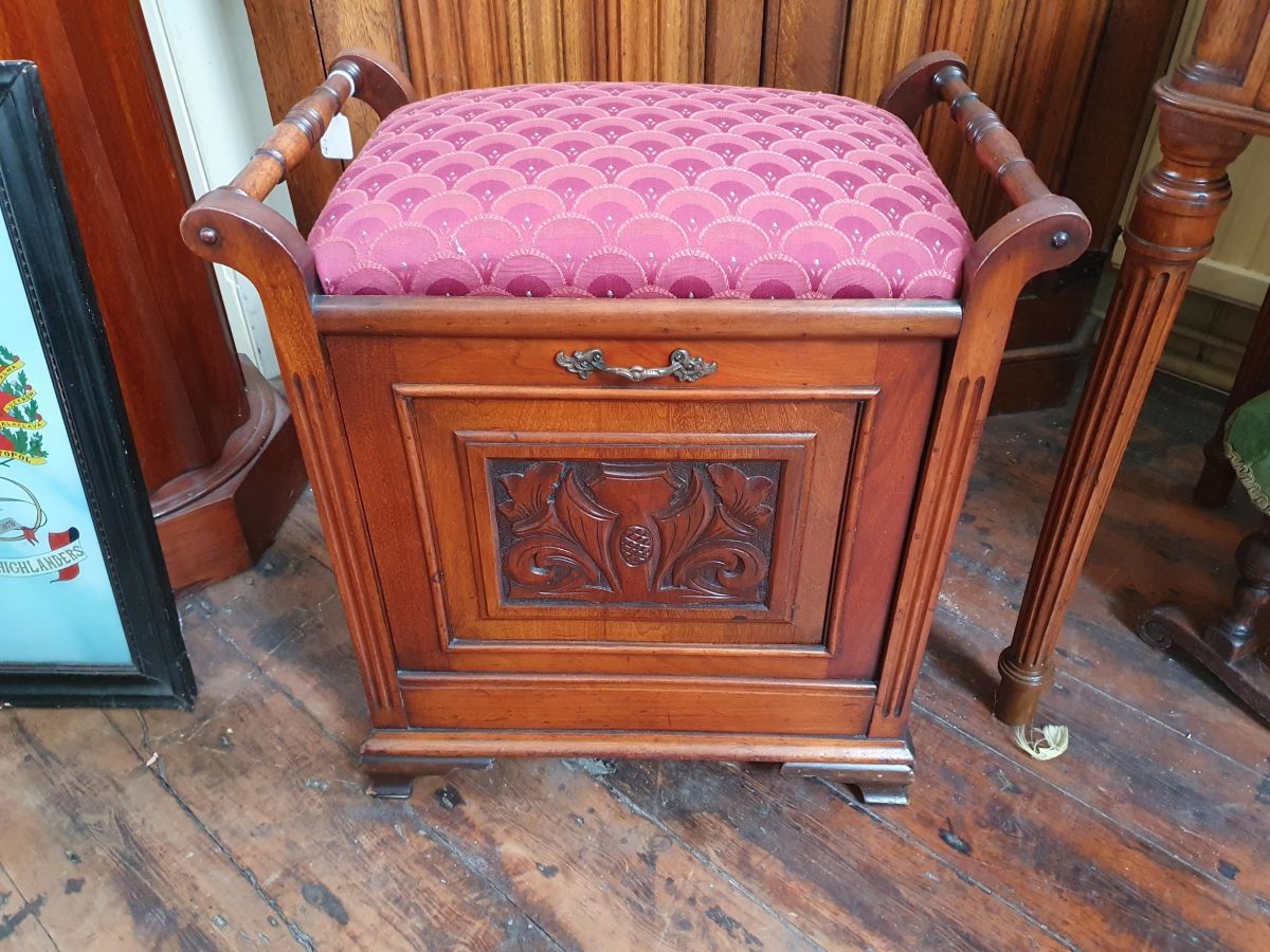 • Late Victorian Walnut Box Seat Piano Stool