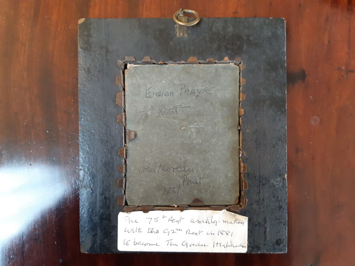 Here is an early 19th century miniature watercolour of Lt. General Sir Arthur Purves Phayre, commisioner of Burma. Painted on ivory by John Moreau, inscribed verso, dated 1831, original brass mounted frame.