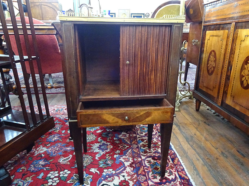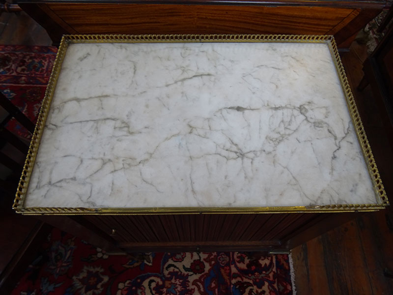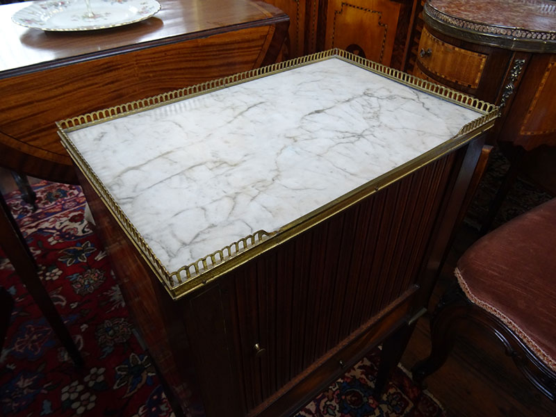 Good quality French marble top cupboard, fitted tambour front.