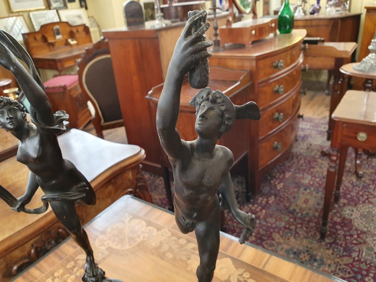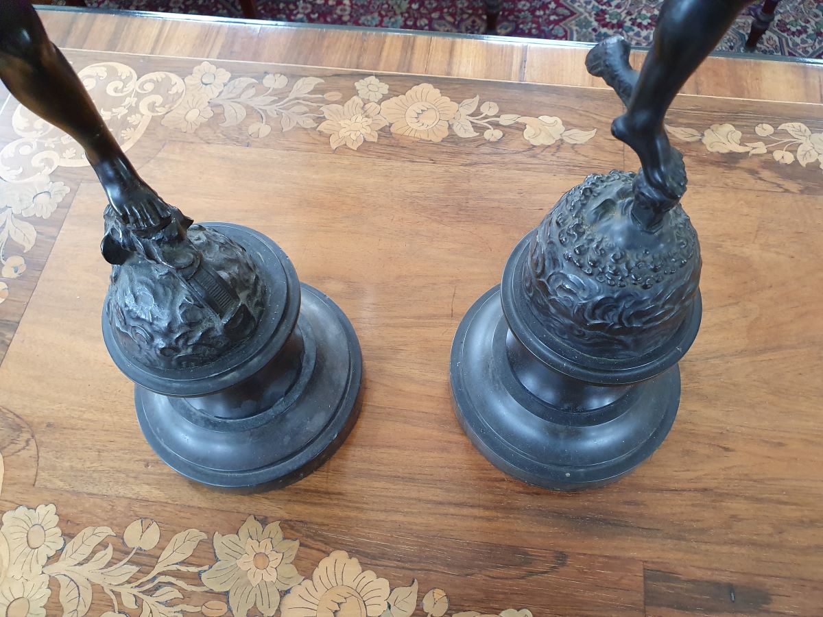 • Pair of 19th Century Bronze Classical Figure Sculptures On Black Marble Bases