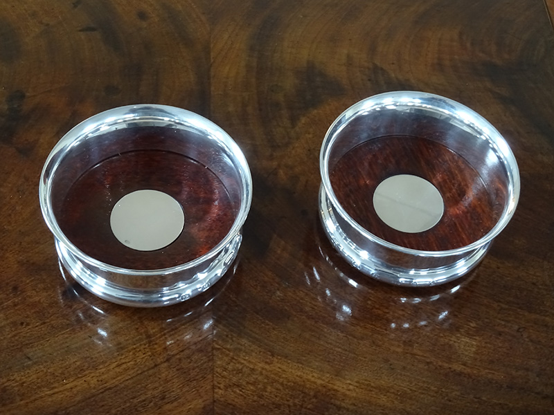 • Pair Regency style silver bottle coasters
