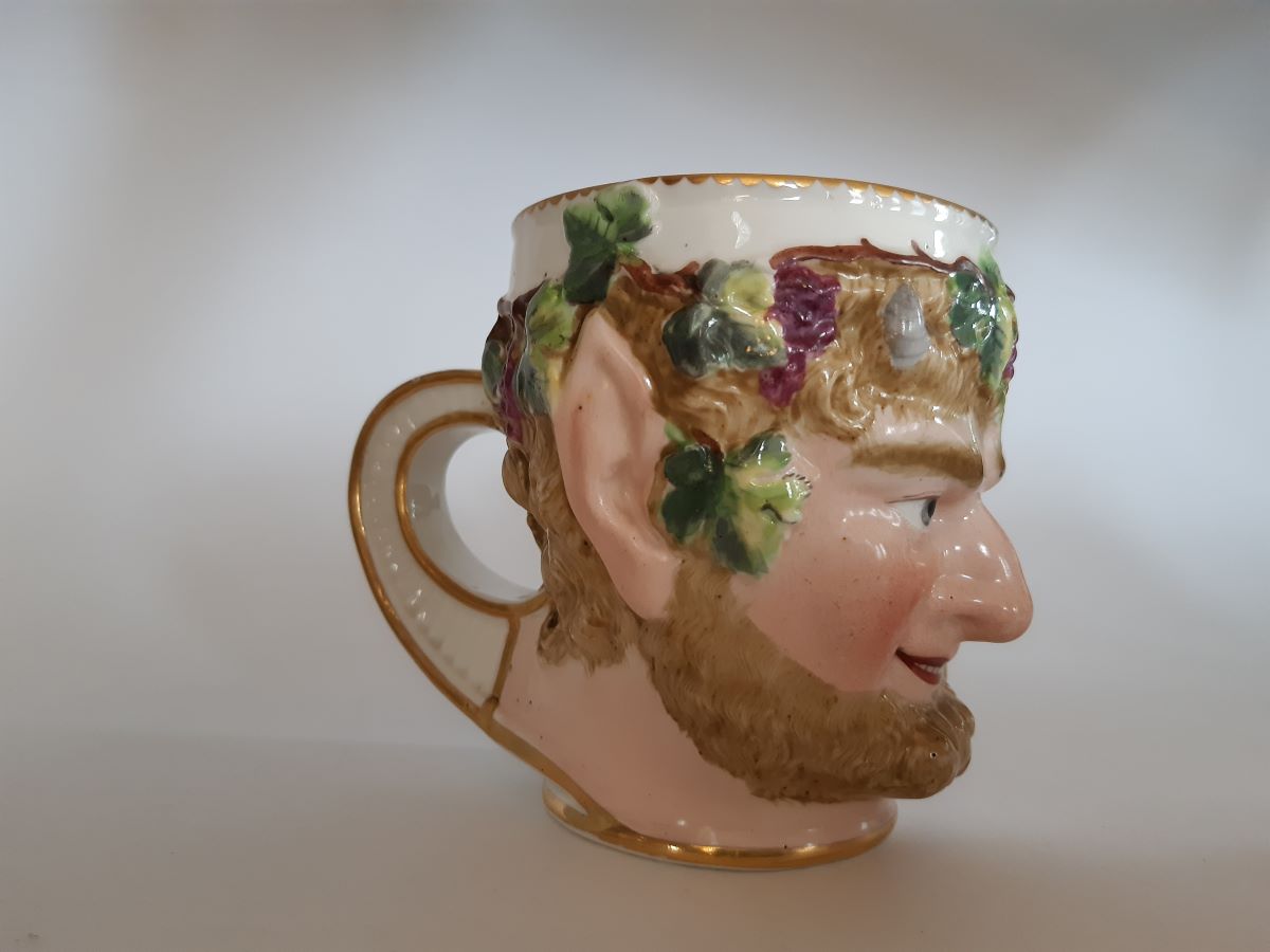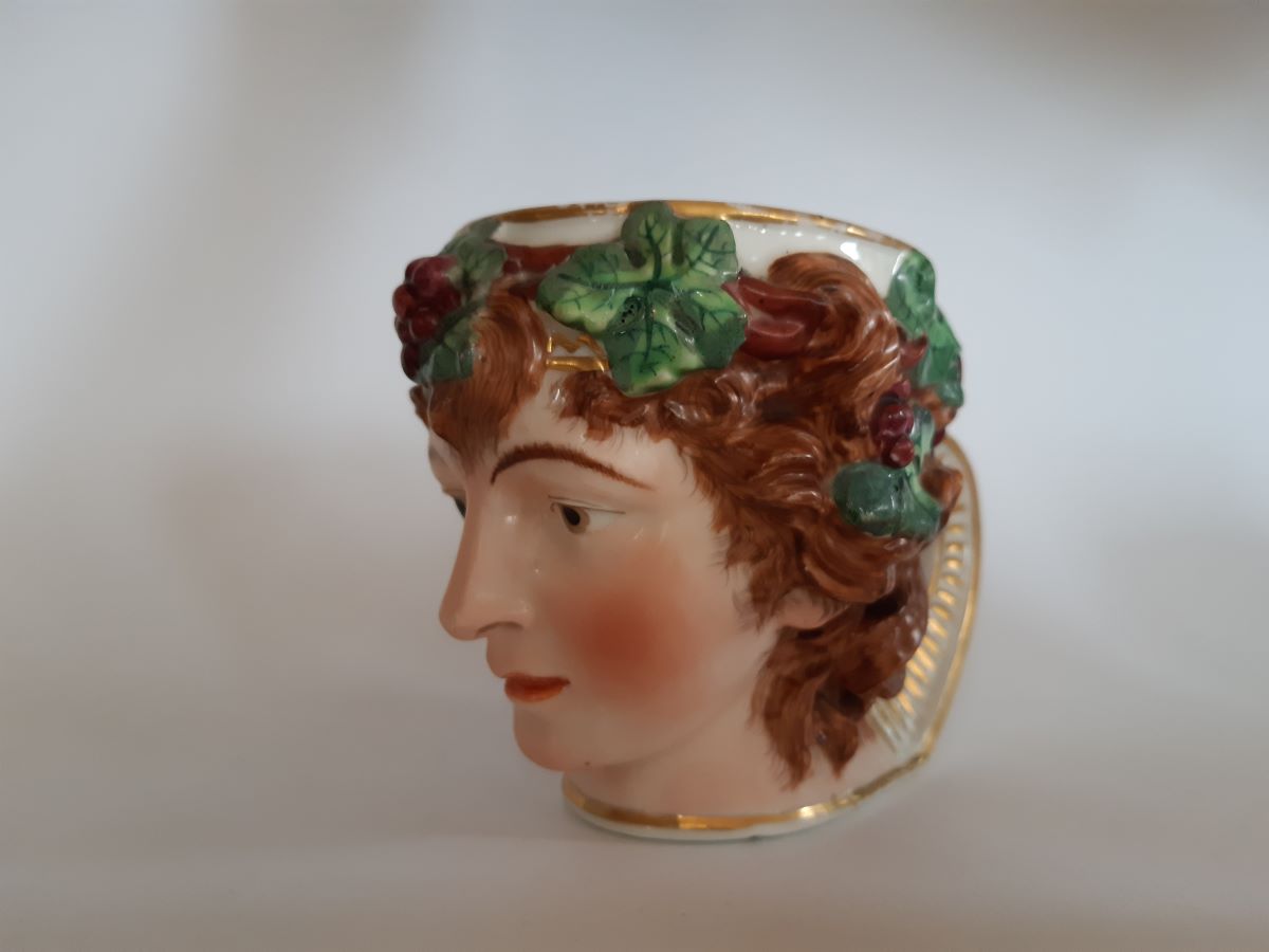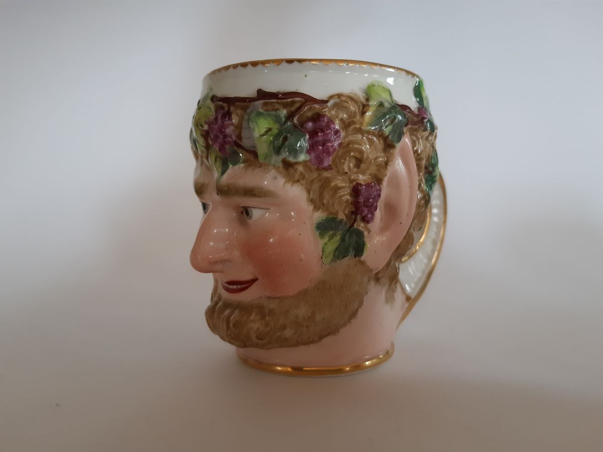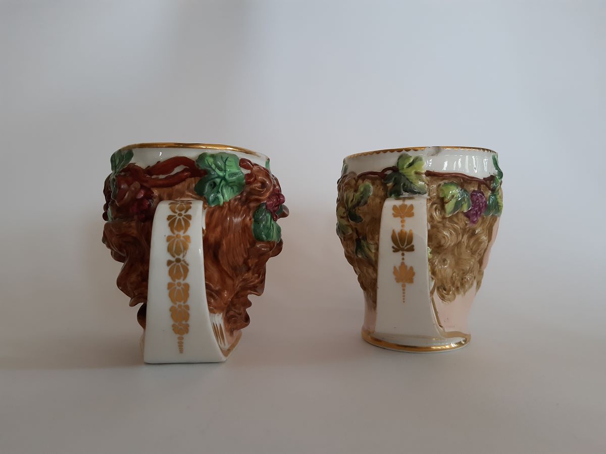 • Two 18th century Derby Porcelain Bacchus head mugs