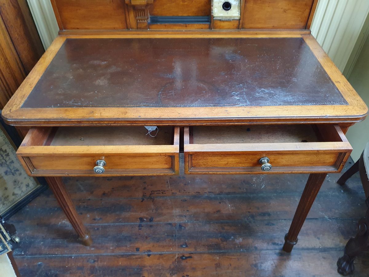Measurements: Height of desk- 2ft 5'' (up to frieze 1ft 11¾''), Height of back- 3ft 6½'', Depth 1ft 11'', Width 3ft