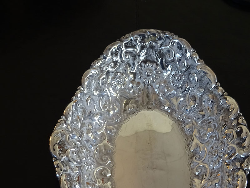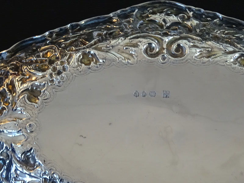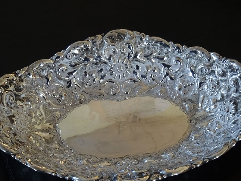 Here is a Victorian chase and embossed oval silver table centre bowl. London 1890.