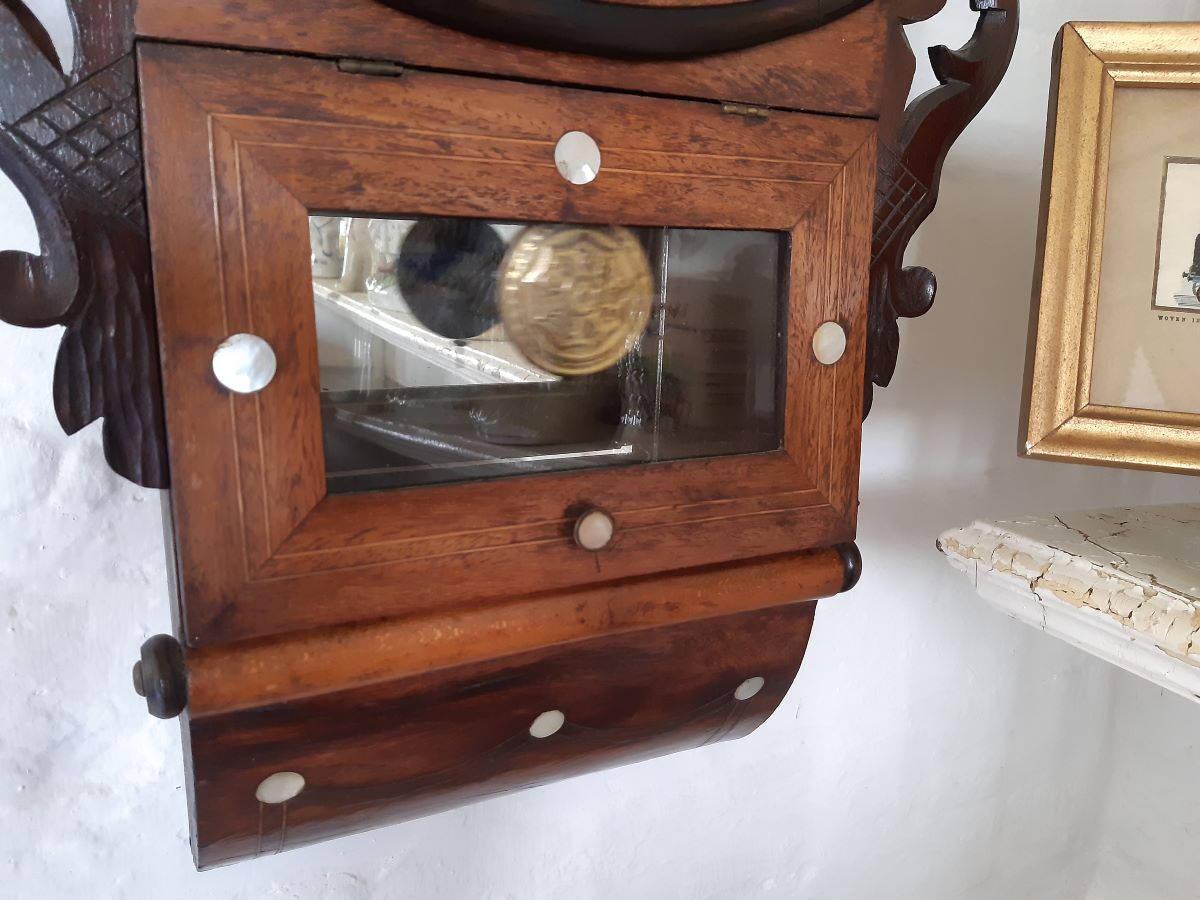 The rosewood case is inlaid with mother of pearl. Measures 28'' x 17''.