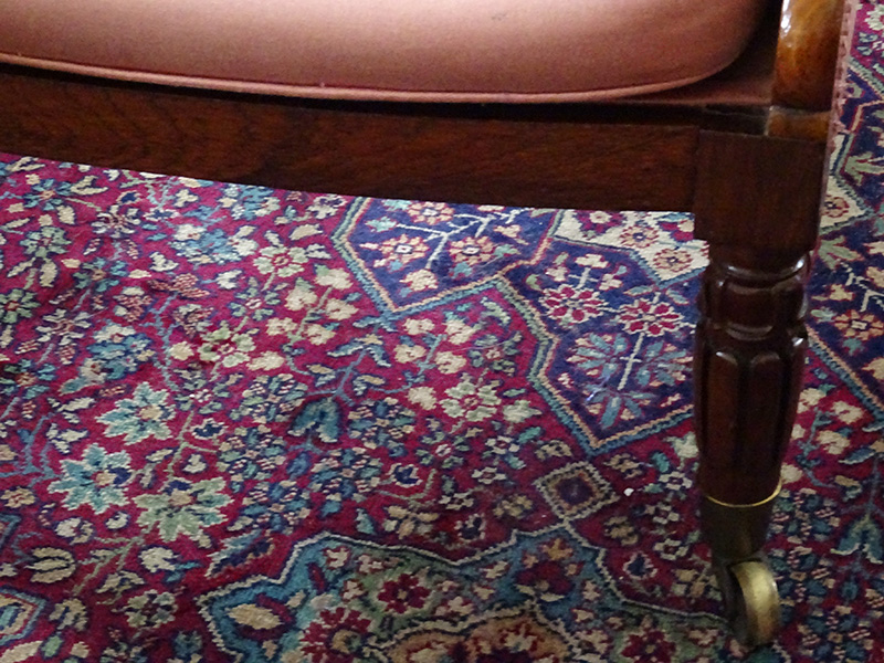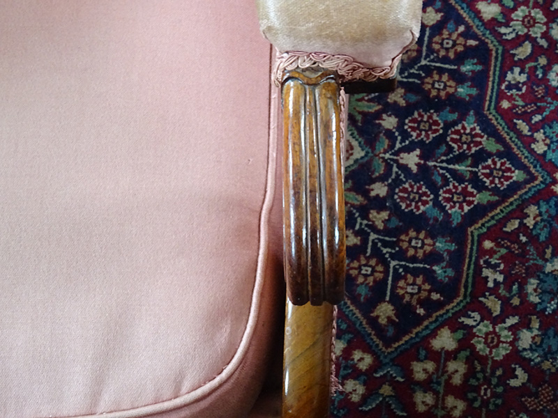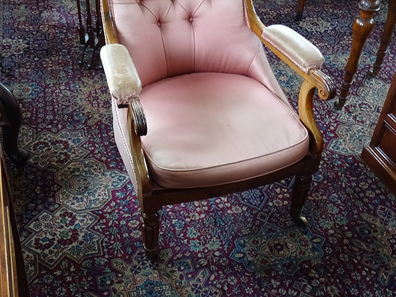 Here is a good rosewood framed easy chair from the William 1V period, the rosewood frame is in excellent condition, but the upholstery is worn and really needs replacing. It is quite small measuring only 3' high and 26 inches wide at the elbows