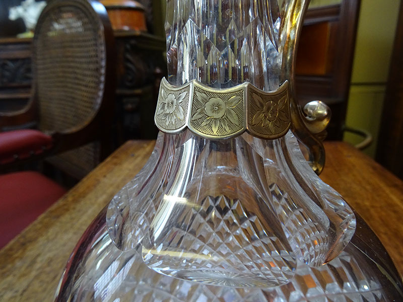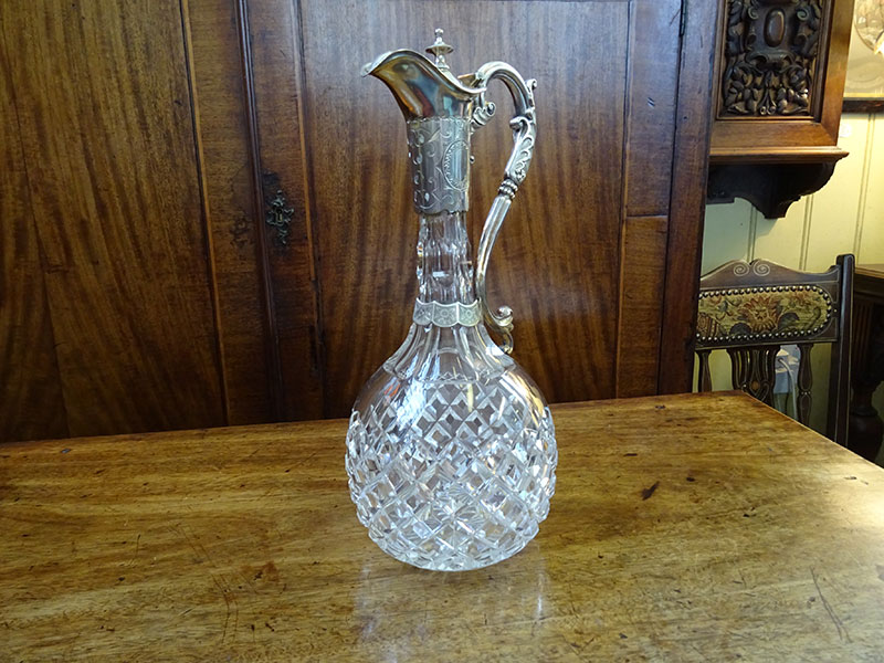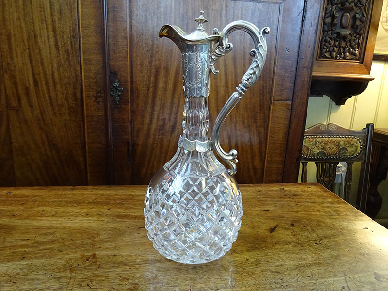 Here is a good cut-glass silver plate claret jug from the 19th century. Excellent condition, measures 12'' high.