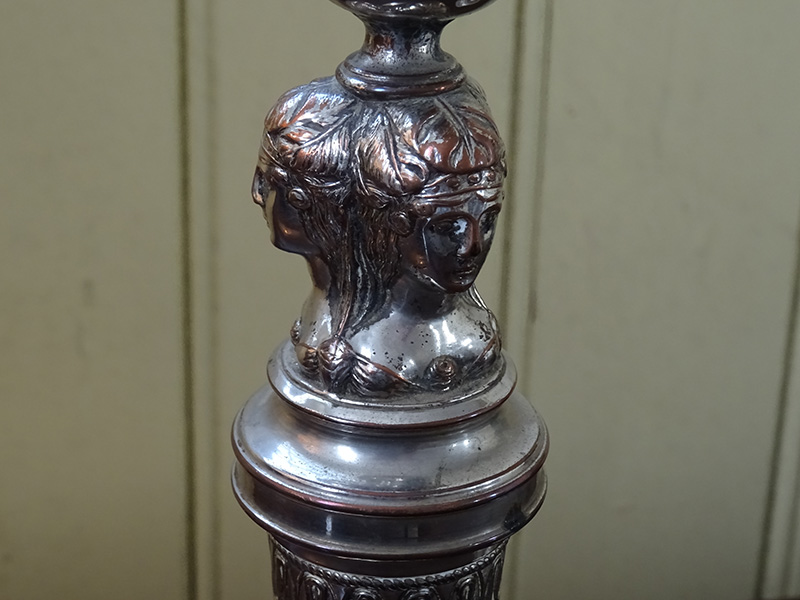 • Pair 19th. century silver plate on copper candlesticks