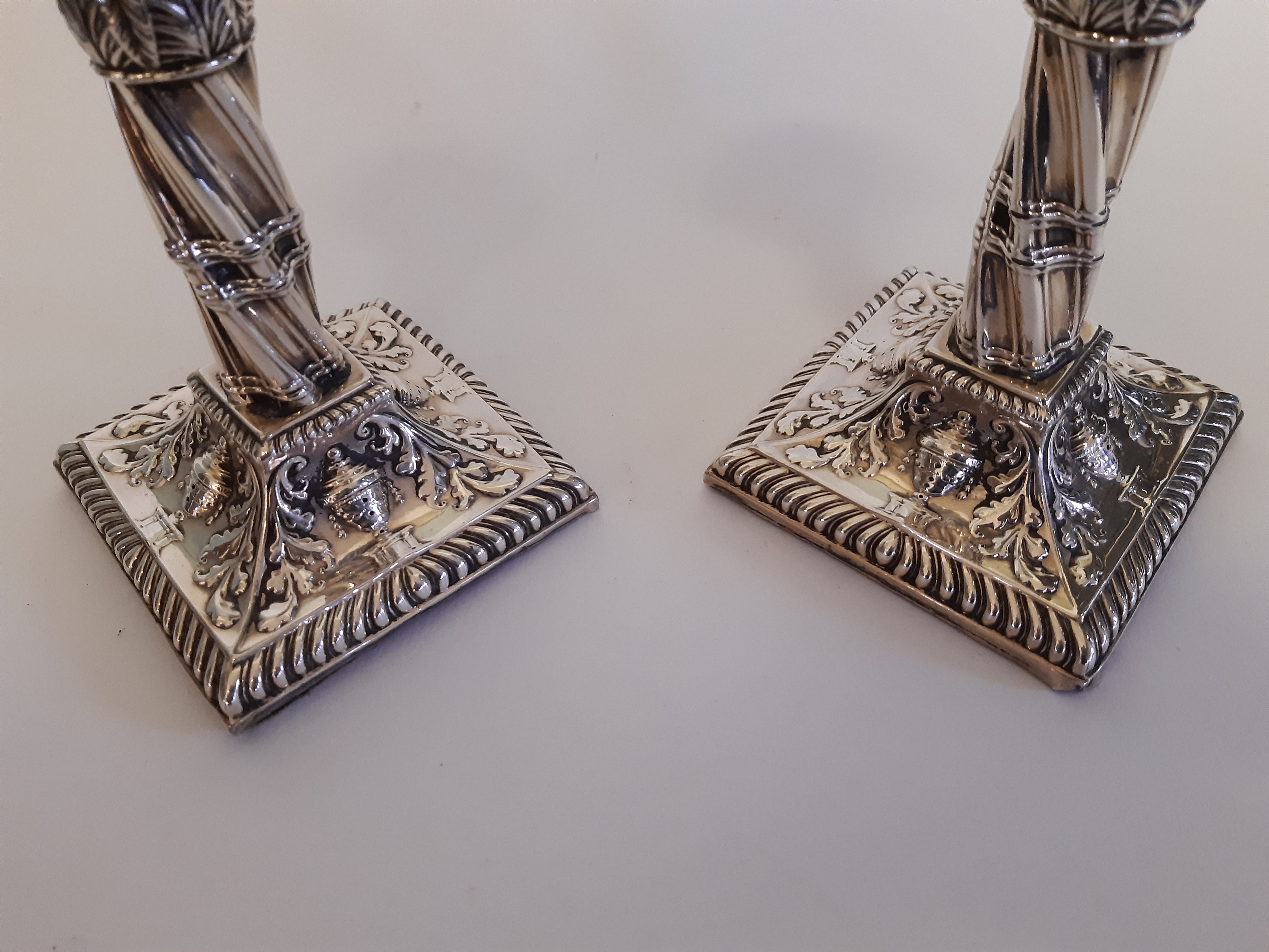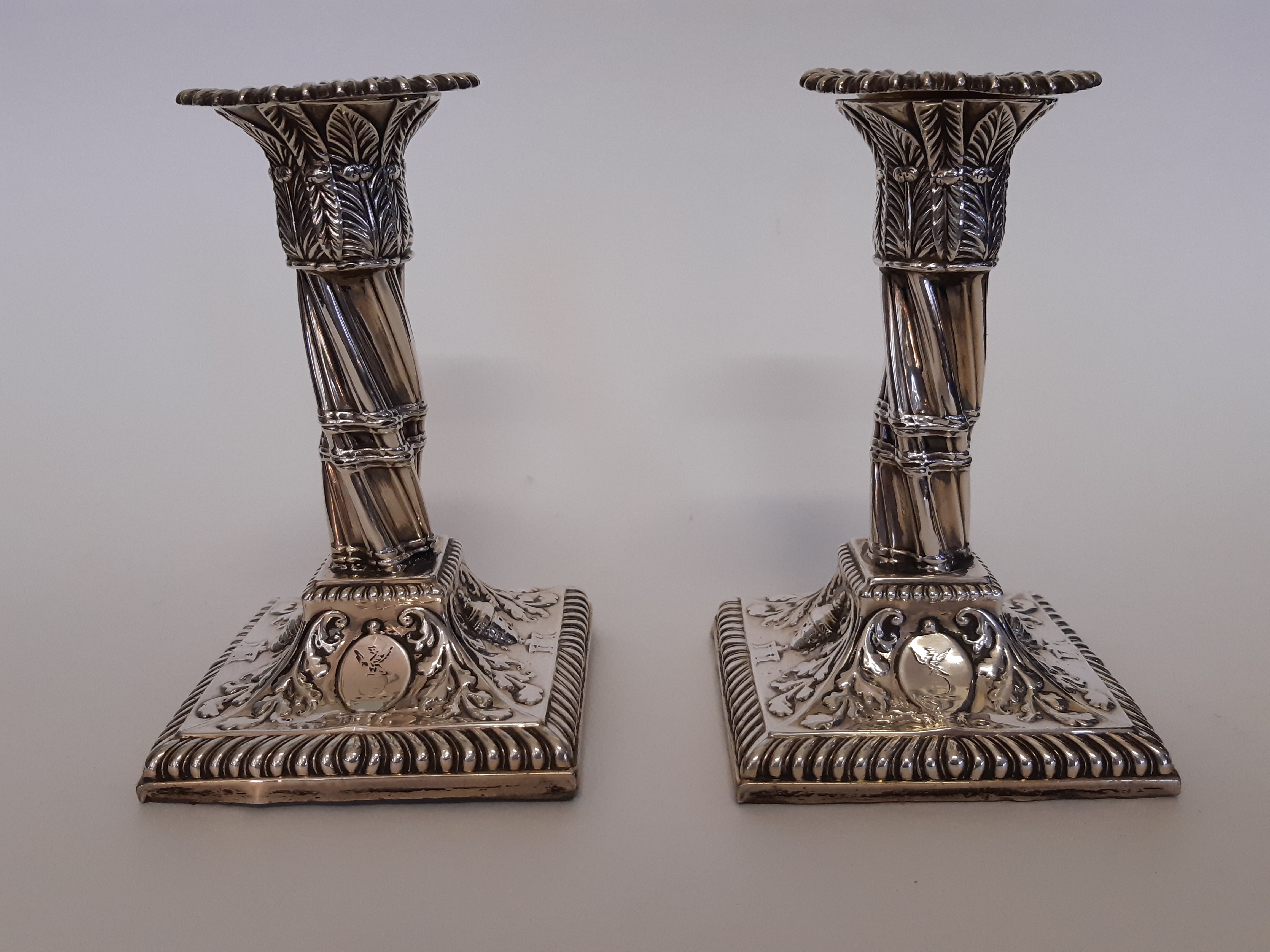 Here are a fine pair of fluted twist column candlesticks from the 19th century. Makers mark JL, Chester 1882. Measure approximately 5'' high.