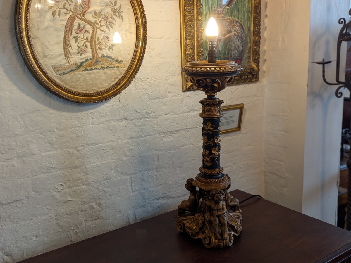 • 19th Century Parcel Gilt Carved Wood Italian Table Lamp