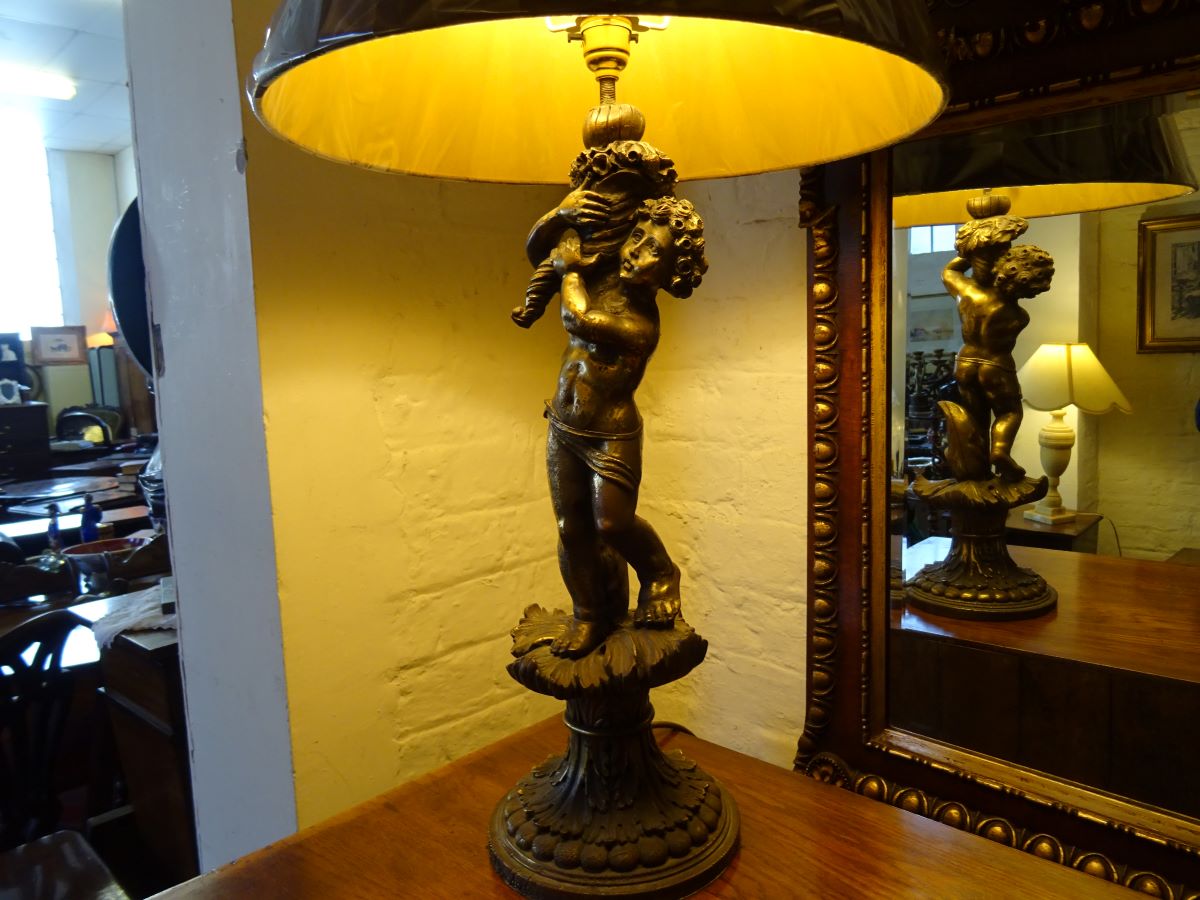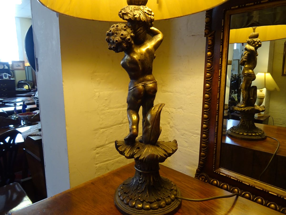 Bronzed copper table lamp in the form of a putti